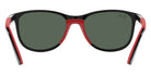 Black on Red (713171) Sunglasses with Dark Green lenses (RJ9077S 713171 49) by Ray-Ban®. Size: 49-16-130, Shape: Square, Material: Injected and Molded.