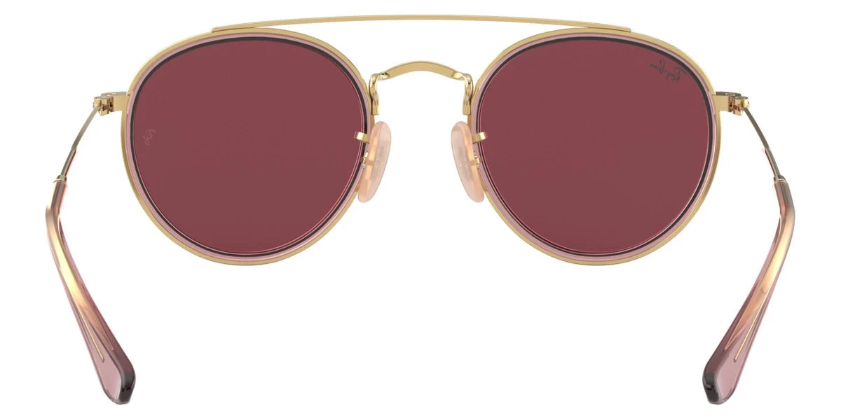 Pink On Arista (281/75) Sunglasses with Dark Violet lenses (RJ9647S 281/75 46) by Ray-Ban®. Size: 46-21-130, Shape: Wayfarer, Material: Metal.