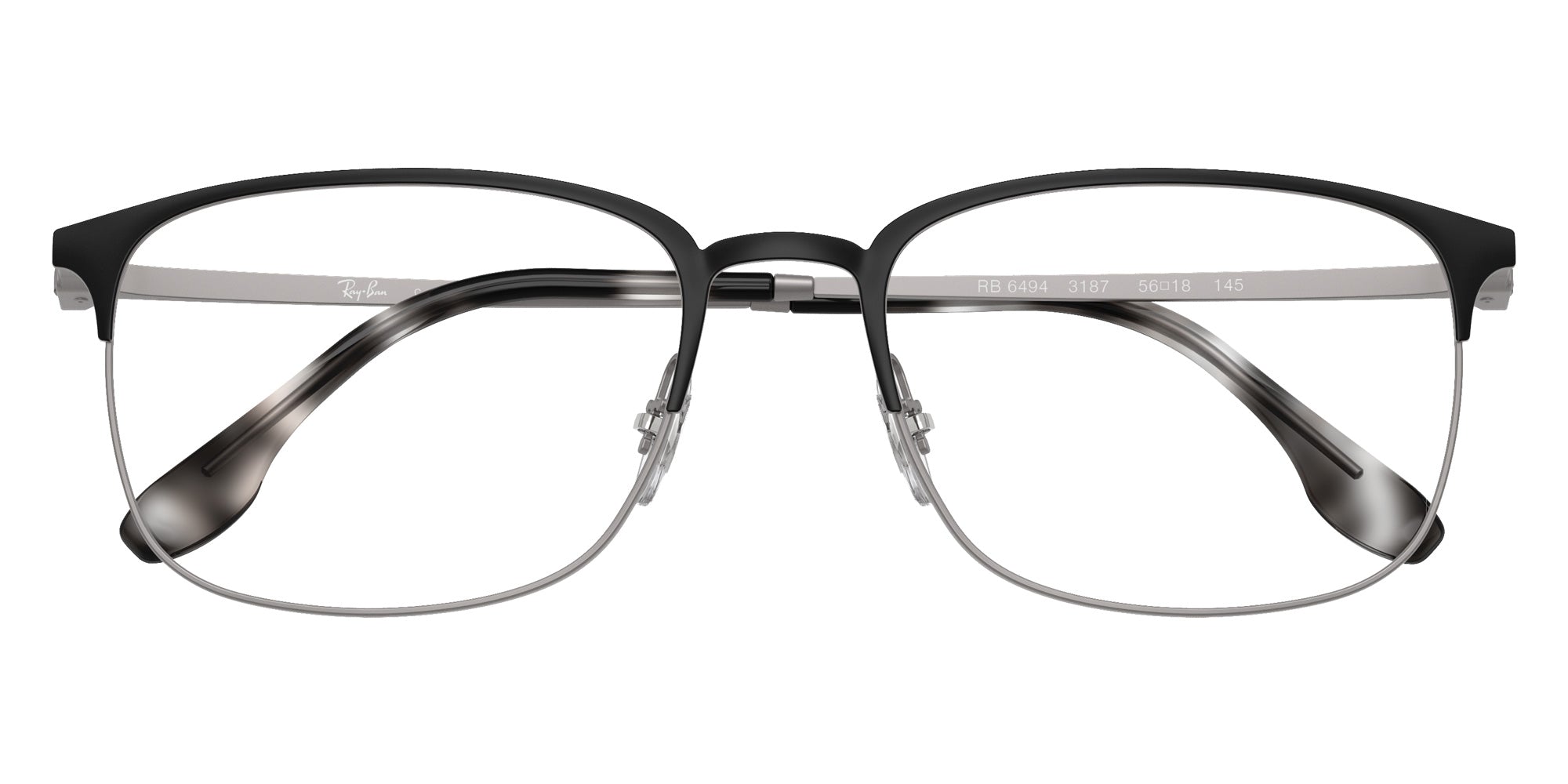 Black on Silver (2861) Eyeglasses (RX6494 2861 54) by Ray-Ban®. Size: 54-18-145, Shape: Square, Material: Metal.