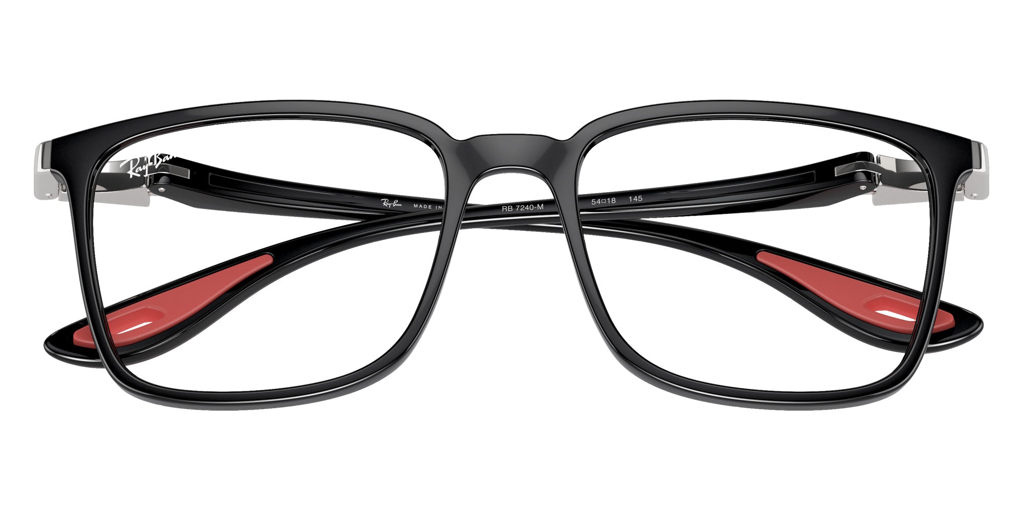 Black (F601) Eyeglasses (RB7240M Scuderia Ferrari F601 54) by Ray-Ban. Size: 54-18-145, Shape: Square, Material: Nylon and Metal.
