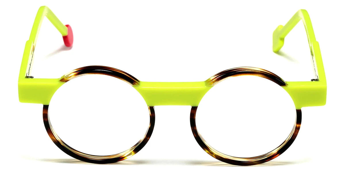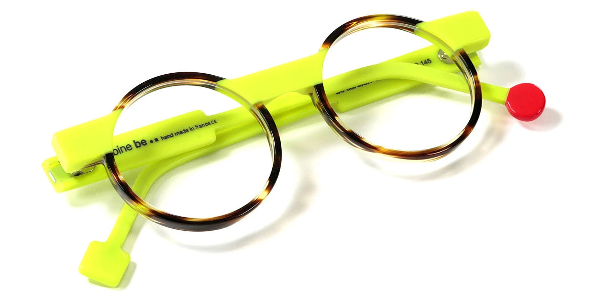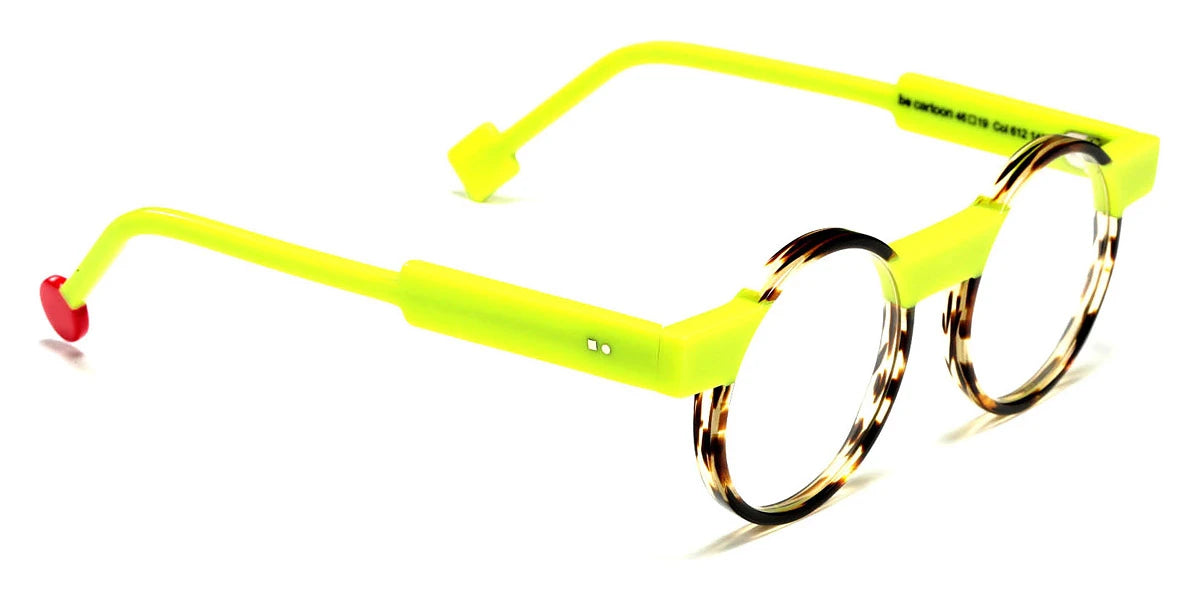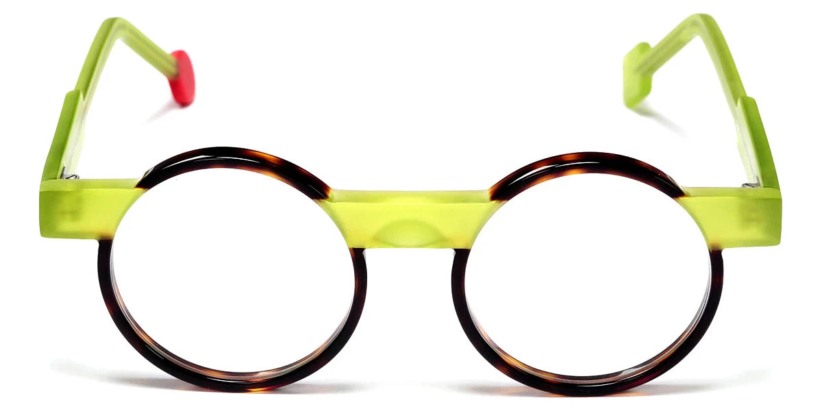 Shiny Cherry Tortoiseshell/Matte Translucent Lime (608) Eyeglasses (Be Cartoon 608 46) by Sabine Be™. Size: 46-19-145, Shape: Round, Material: Acetate.