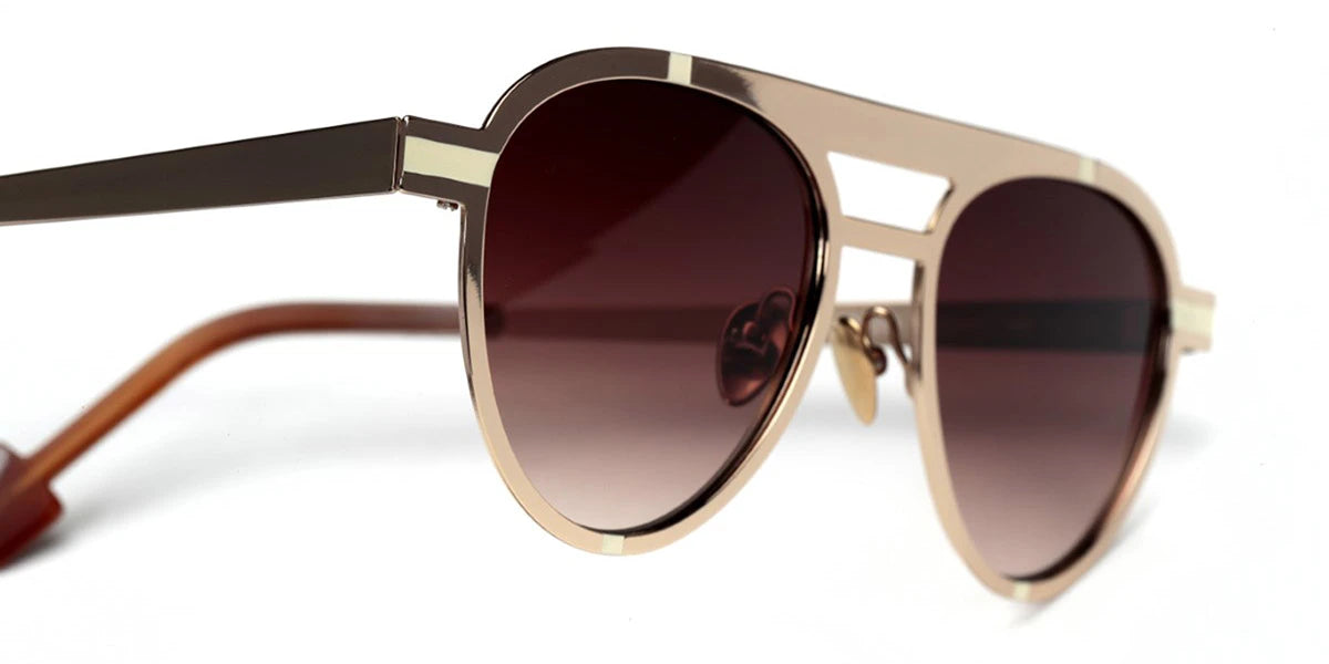 Be Chill Sun Sunglasses by Sabine Be™. The aviator shape design feature a full rim metal frame. This model is available in four different color combinations and sizes. The Be Chill Sun are stylish and modern sunglasses for contemporary aristocrats with good taste. They will provide maximum wearing comfort under any circumstances, perfectly complementing the individual style of the wearer. The model has an elegant plastic frame, comfortable temples and gradient lenses that will reliably protect the eyes from the sun, splashes, wind and flying insects. It will appeal to a professor and a politician, an actor and a student, an athlete and a writer. The be chill sun is an excellent choice for active and independent people. Sabine Be frames are widely popular due to their original design, style, and elegance. Both men's and women's frames differ in stylistic features with an imprint of the main trends. The brand is relatively young, founded in 2014, but thanks to the uniqueness of the design in each frame, and impeccable style, Sabine Be very quickly conquered the optical market and became a benchmark of sophistication and individuality. Each frame is made exclusively in France, each detail complements and emphasizes the uniqueness of the product. Thanks to careful attention to every detail plus the work of the best optical designers, each eyeglass frame is a true work of art. Combining different materials and luxurious forms, any model from the French manufacturer corresponds to the latest fashion trends. The variety of colors in the frames and the combination of materials can satisfy even the most demanding request. Whether it's a single material design or a combination of minimal color and finish to something quite complex, the company's approach to eyewear translates into something that matches your personality and style.