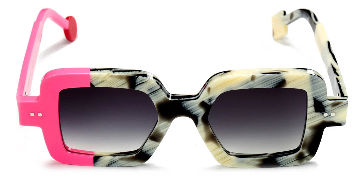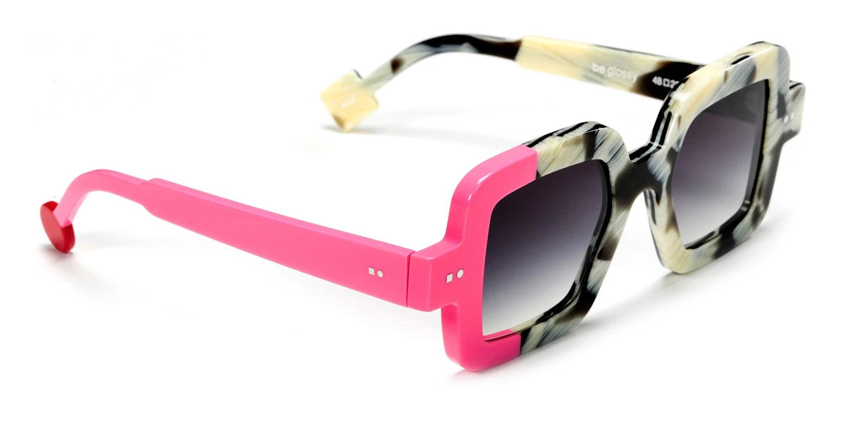 Shiny Black Horn/Shiny Neon Pink (759) Sunglasses (Be Glossy Sun 759 48) by Sabine Be™. Size: 48-22-145, Shape: Square, Material: Acetate.