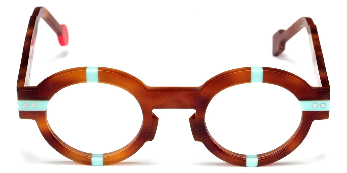 Matte Blonde Tortoise/Matte Turquoise (372) Eyeglasses (Be Groom 372 43) by Sabine Be™. Size: 43-26-145, Shape: Round, Material: Acetate.