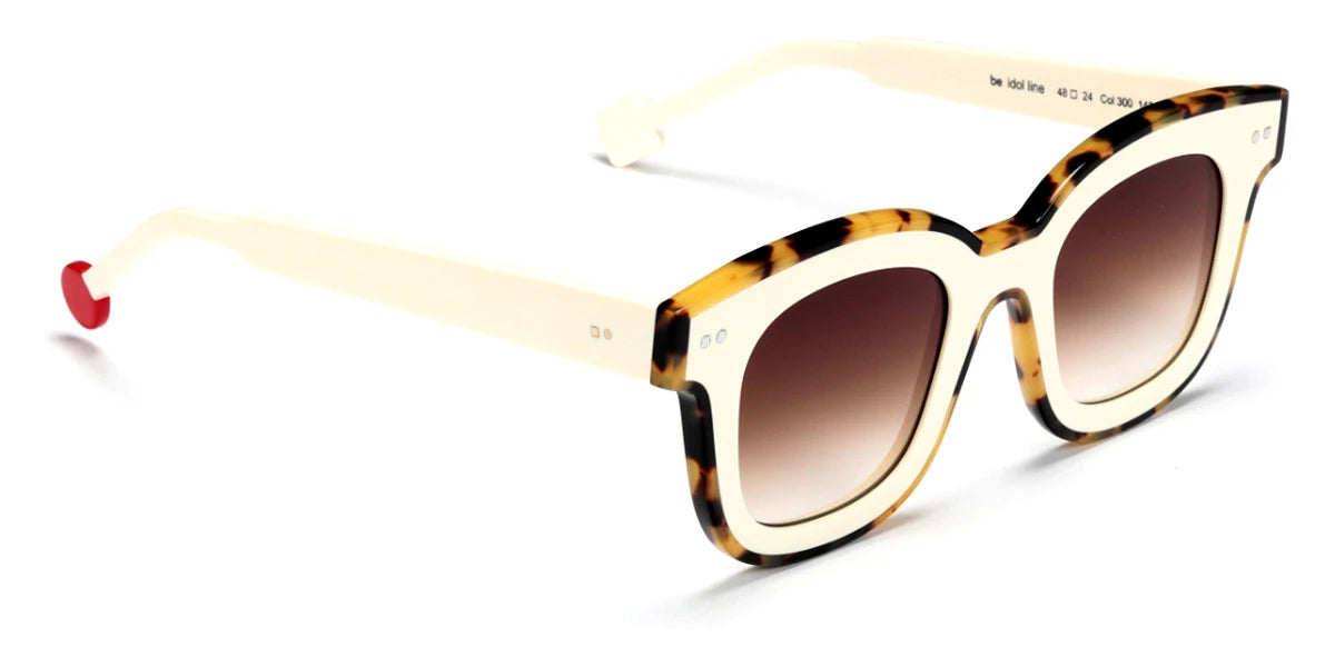Shiny Vintage Tortoise/Shiny White (298) Sunglasses (Be Idol Line Sun 298 48) by Sabine Be™. Size: 48-24-145, Shape: Rectangle, Material: Acetate.