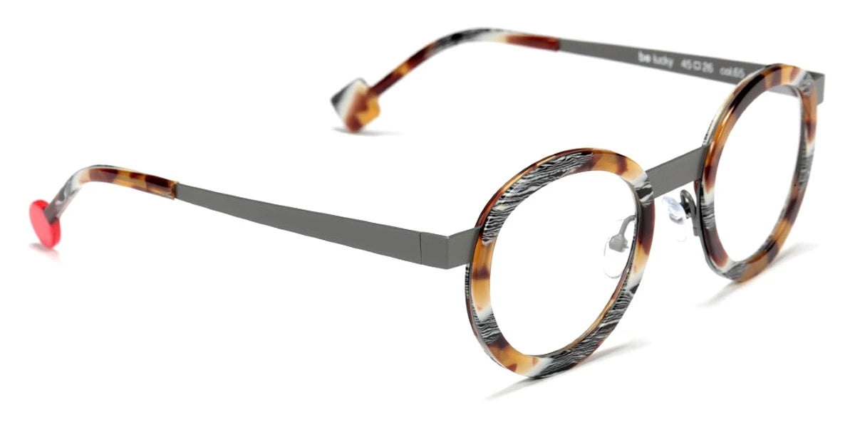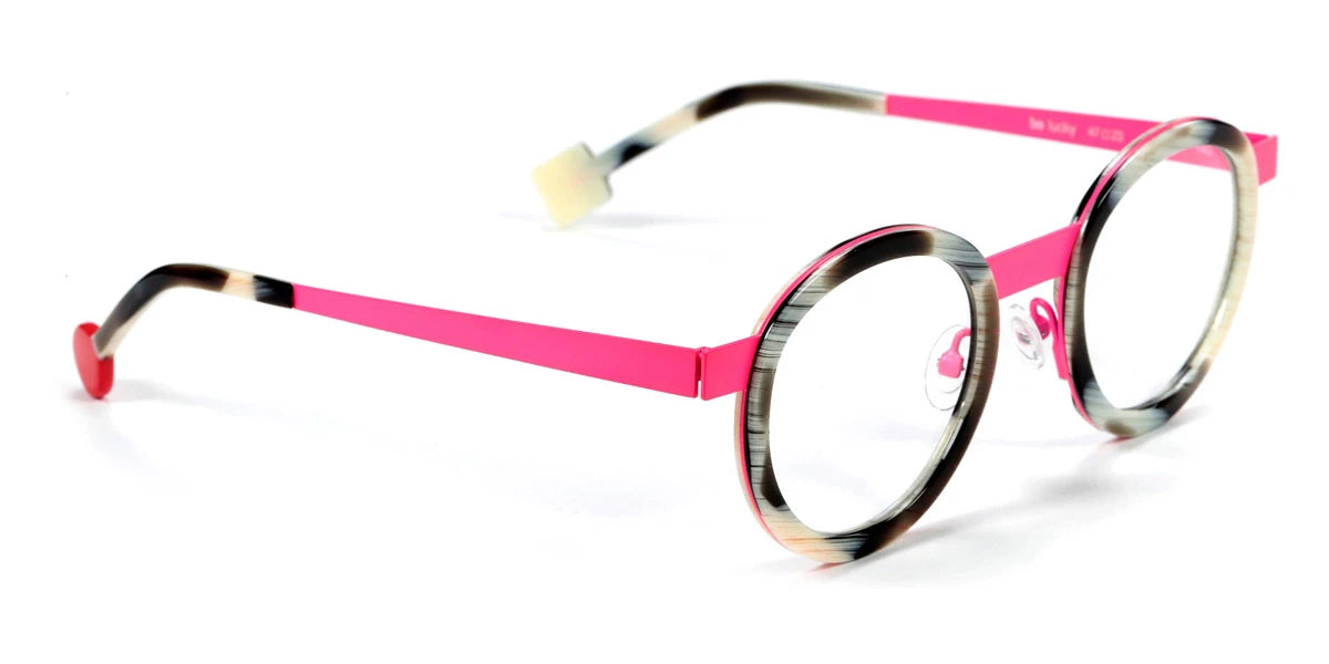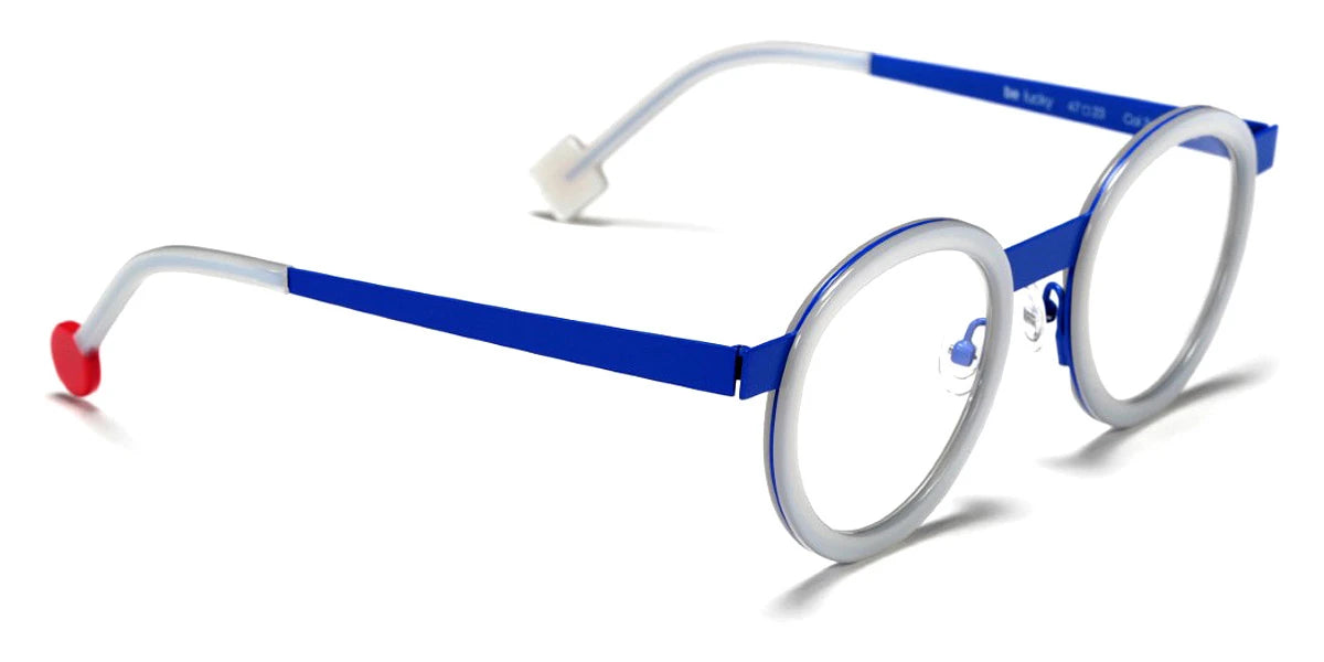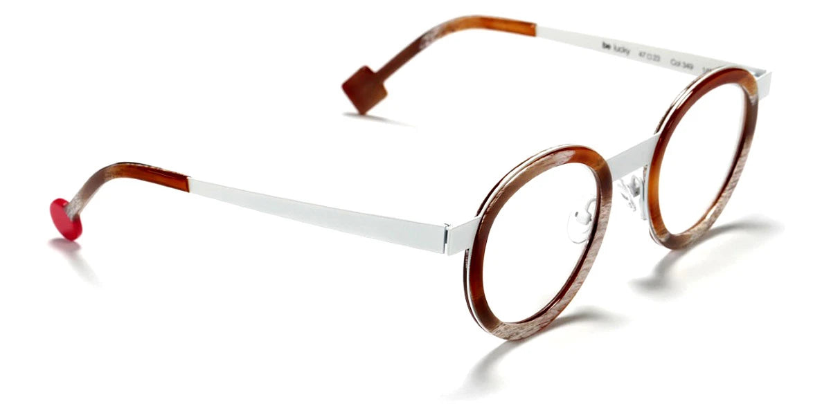 Be Lucky Eyeglasses by Sabine Be™. The round shape design feature a full rim acetate and metal frame. This model is available in sixteen different color combinations and sizes. The Be Lucky eyeglass model is the perfect accessory for fans of luxury and prestige who keep up with the latest trends. They are designed for customers who appreciate the latest trends and pay attention to the smallest details. They are also an accessory to most elegant looks, so if you want to buy even one pair of Sabine Be glasses, you should know that they are suitable for most situations, including everyday wear. Such non-standard solutions emphasize the creative approach of talented designers to their work. Sabine Be frames are widely popular due to their original design, style, and elegance. Both men's and women's frames differ in stylistic features with an imprint of the main trends. The brand is relatively young, founded in 2014, but thanks to the uniqueness of the design in each frame, and impeccable style, Sabine Be very quickly conquered the optical market and became a benchmark of sophistication and individuality. Each frame is made exclusively in France, each detail complements and emphasizes the uniqueness of the product. Thanks to careful attention to every detail plus the work of the best optical designers, each eyeglass frame is a true work of art. Combining different materials and luxurious forms, any model from the French manufacturer corresponds to the latest fashion trends. The variety of colors in the frames and the combination of materials can satisfy even the most demanding request. Whether it's a single material design or a combination of minimal color and finish to something quite complex, the company's approach to eyewear translates into something that matches your personality and style.