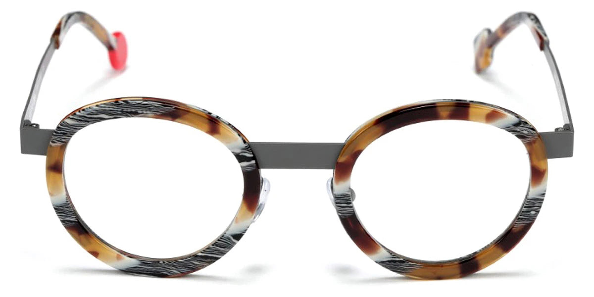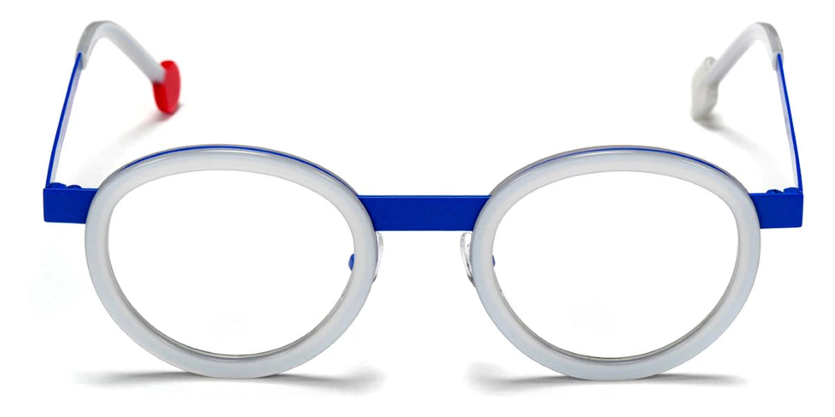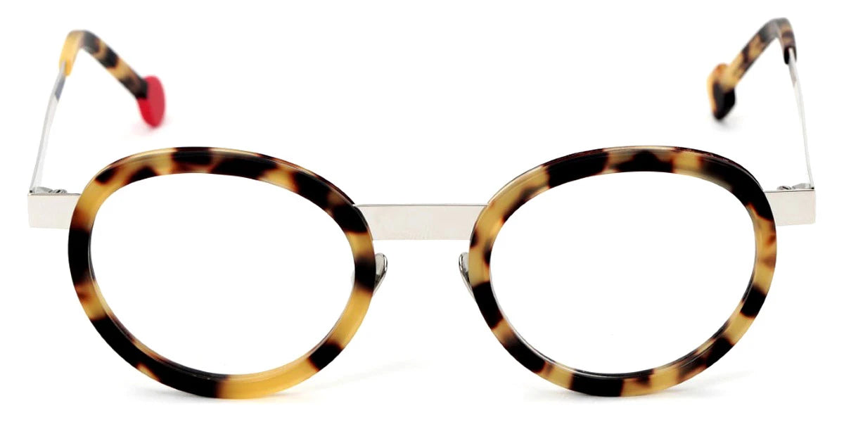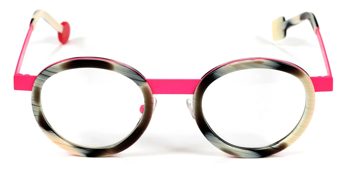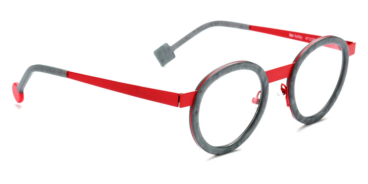 Be Lucky Eyeglasses by Sabine Be™. The round shape design feature a full rim acetate and metal frame. This model is available in sixteen different color combinations and sizes. The Be Lucky eyeglass model is the perfect accessory for fans of luxury and prestige who keep up with the latest trends. They are designed for customers who appreciate the latest trends and pay attention to the smallest details. They are also an accessory to most elegant looks, so if you want to buy even one pair of Sabine Be glasses, you should know that they are suitable for most situations, including everyday wear. Such non-standard solutions emphasize the creative approach of talented designers to their work. Sabine Be frames are widely popular due to their original design, style, and elegance. Both men's and women's frames differ in stylistic features with an imprint of the main trends. The brand is relatively young, founded in 2014, but thanks to the uniqueness of the design in each frame, and impeccable style, Sabine Be very quickly conquered the optical market and became a benchmark of sophistication and individuality. Each frame is made exclusively in France, each detail complements and emphasizes the uniqueness of the product. Thanks to careful attention to every detail plus the work of the best optical designers, each eyeglass frame is a true work of art. Combining different materials and luxurious forms, any model from the French manufacturer corresponds to the latest fashion trends. The variety of colors in the frames and the combination of materials can satisfy even the most demanding request. Whether it's a single material design or a combination of minimal color and finish to something quite complex, the company's approach to eyewear translates into something that matches your personality and style.