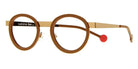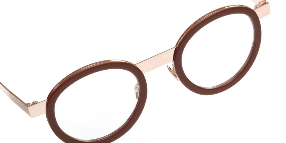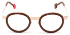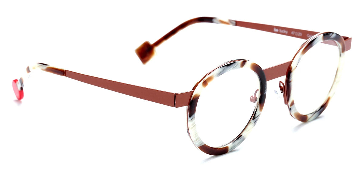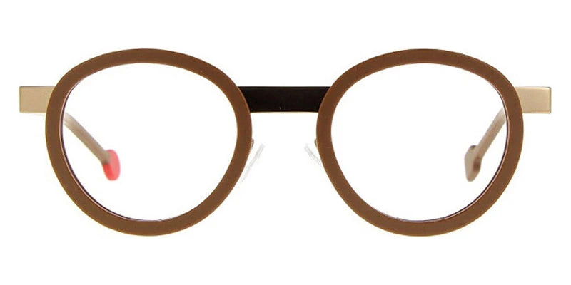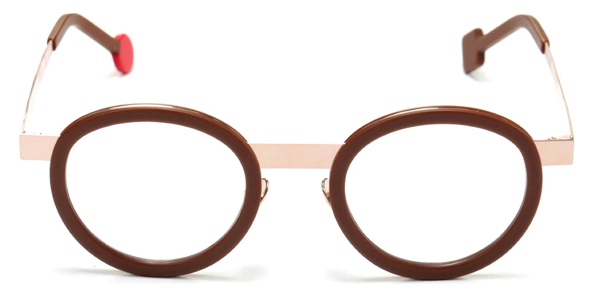 Matte Brown/Polished Rose Gold (04) Eyeglasses (Be Lucky 04 47) by Sabine Be™. Size: 47-23-140, Shape: Round, Material: Acetate and Metal.
