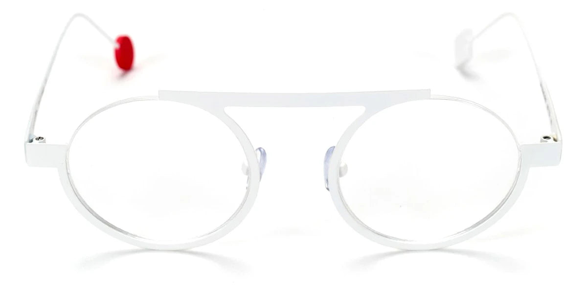 Satin White (123) Eyeglasses (Be Mood Slim 123 48) by Sabine Be™. Size: 48-22-140, Shape: Round, Material: Metal.