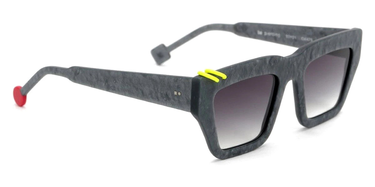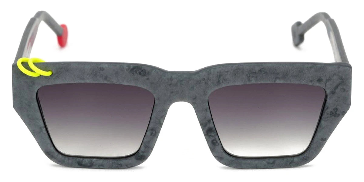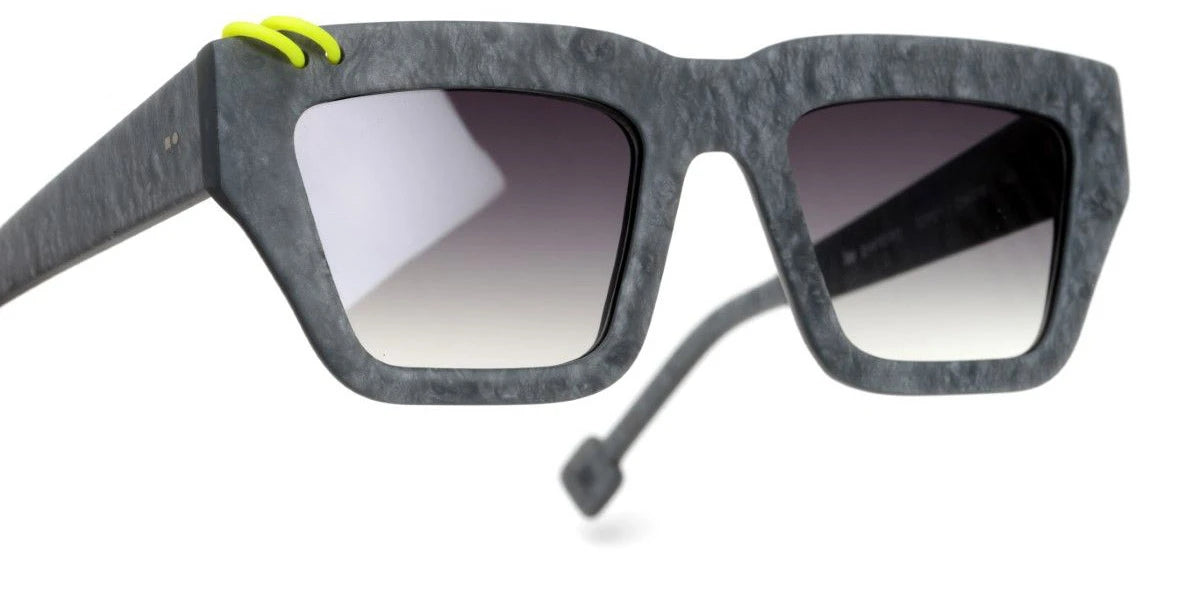 Matte Marble Mouse Gray/Neon Yellow (475) Sunglasses (Be Piercing Sun 475 53) by Sabine Be™. Size: 53-17-145, Shape: Rectangle, Material: Acetate.