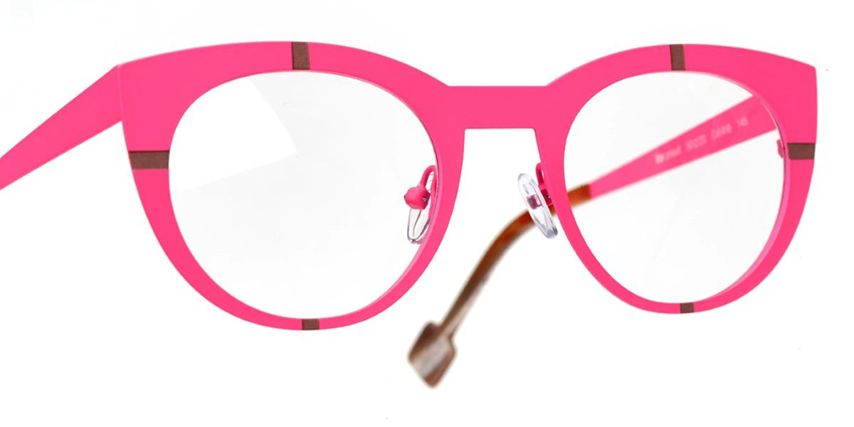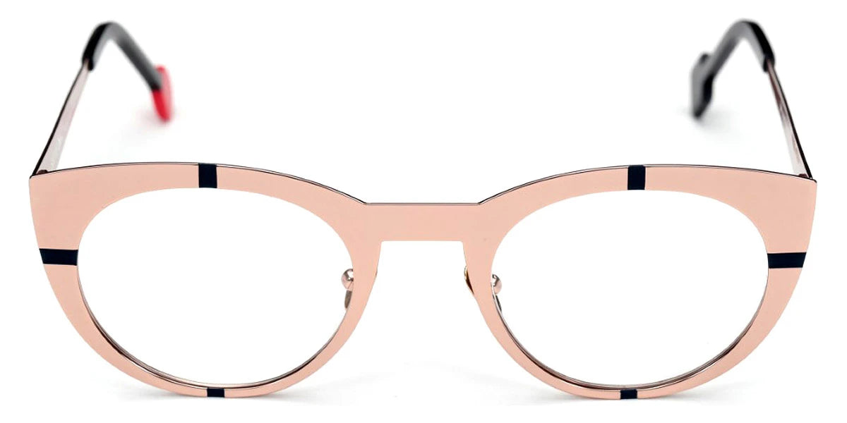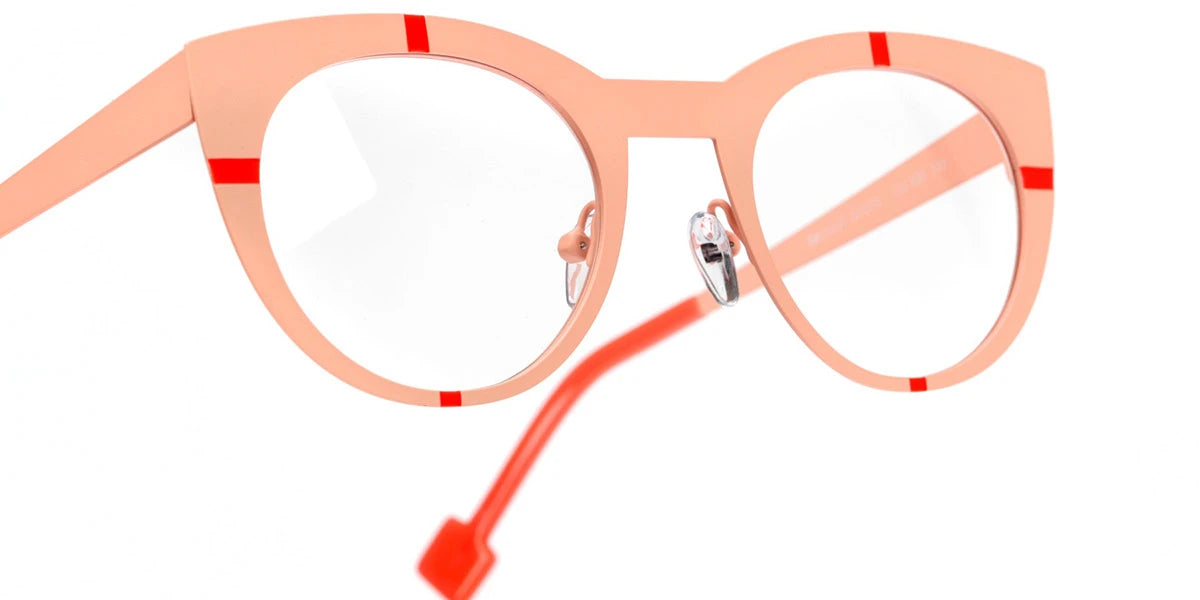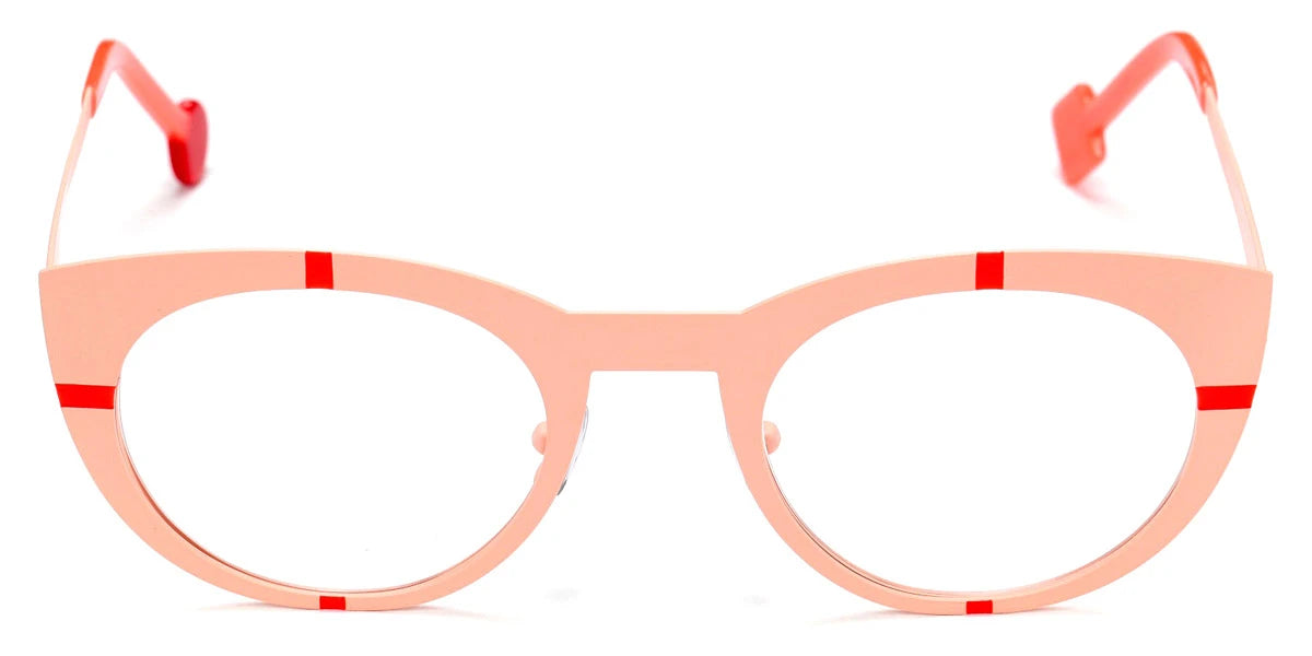Nude Satin/Neon Orange Satin (404) Eyeglasses (Be Proud 404 50) by Sabine Be™. Size: 50-23-145, Shape: Cat-Eye, Material: Metal.