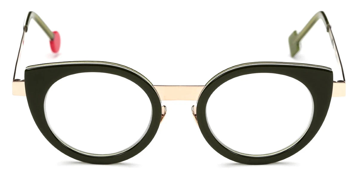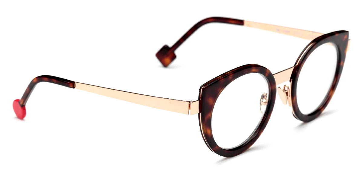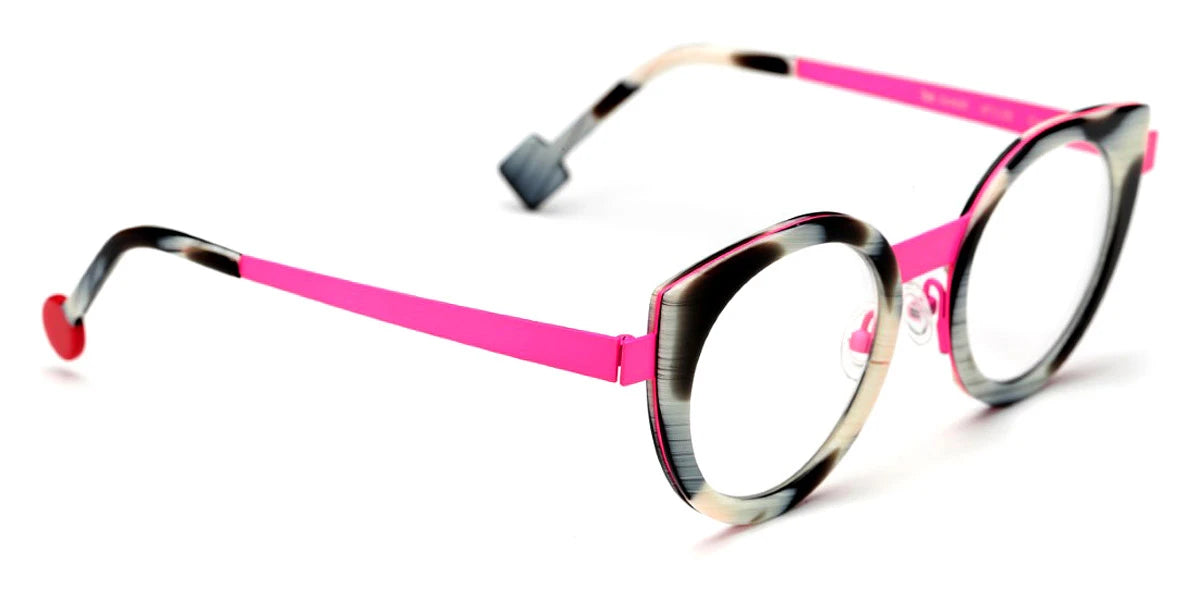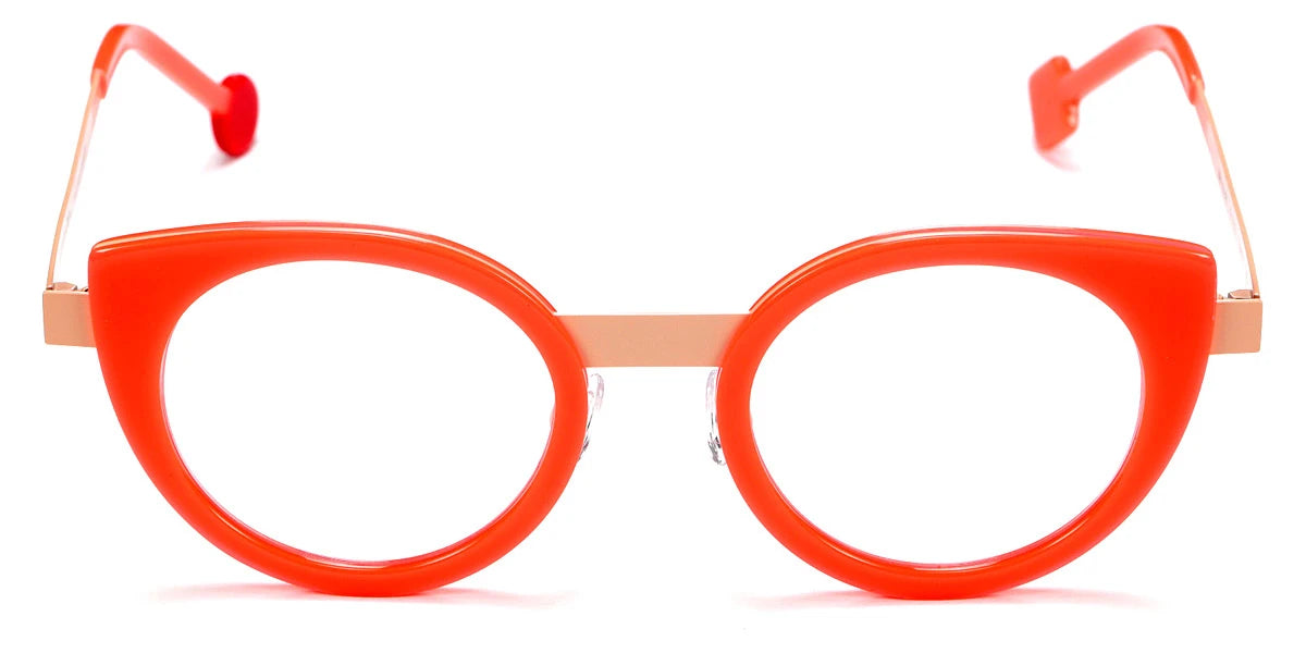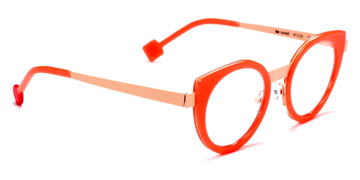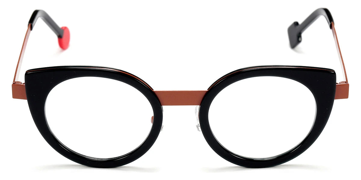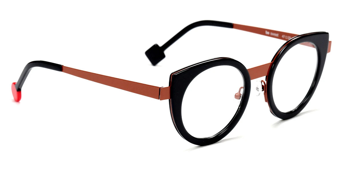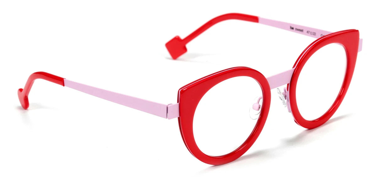 Be Sweet Eyeglasses by Sabine Be™. The cat-eye shape design feature a full rim acetate and metal frame. This model is available in ten different color combinations and sizes. The Be Sweet is a great gift for extravagant women who prefer to be inimitable in every gesture and in every accessory. The model has a wide cat-eye frame made of sustainable and hypoallergenic plastic and other eco-friendly materials. It will perfectly fit into any circumstances, creating a friendly atmosphere in the office, on the beach, on the bus, on board the Pacific liner, in the hospital, and at the parliamentary meeting. Real comfort, according to the designers of Sabine Be, means excellent visibility and safety for the eyes that see the smiles of others. Sabine Be frames are widely popular due to their original design, style, and elegance. Both men's and women's frames differ in stylistic features with an imprint of the main trends. The brand is relatively young, founded in 2014, but thanks to the uniqueness of the design in each frame, and impeccable style, Sabine Be very quickly conquered the optical market and became a benchmark of sophistication and individuality. Each frame is made exclusively in France, each detail complements and emphasizes the uniqueness of the product. Thanks to careful attention to every detail plus the work of the best optical designers, each eyeglass frame is a true work of art. Combining different materials and luxurious forms, any model from the French manufacturer corresponds to the latest fashion trends. The variety of colors in the frames and the combination of materials can satisfy even the most demanding request. Whether it's a single material design or a combination of minimal color and finish to something quite complex, the company's approach to eyewear translates into something that matches your personality and style.