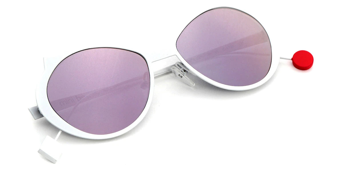 Satin White (123) Sunglasses (Mini Be Cat's Slim Sun 123 51) by Sabine Be™. Size: 51-20-140, Shape: Cat-Eye, Material: Metal.
