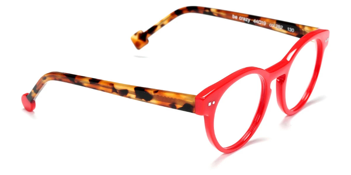 Mini Be Crazy Eyeglasses by Sabine Be™. The round shape design feature a full rim acetate frame. This model is available in ten different color combinations and sizes. The Sabine Be brand is based on the principles of elegance, aesthetics, innovation, and design. And this applies to the collection of frames for kids. This is an authentic brand from France, attractive at all times. It represents sophisticated taste with a touch of timeless tradition and a perfect blend of childlike innocence and charm, unique design, finely crafted details, and exquisite decorations using high-quality materials. All these characteristics fit perfectly into the Mini Be Crazy model, which is already available at EyeOns. Sabine Be frames are widely popular due to their original design, style, and elegance. Both men's and women's frames differ in stylistic features with an imprint of the main trends. The brand is relatively young, founded in 2014, but thanks to the uniqueness of the design in each frame, and impeccable style, Sabine Be very quickly conquered the optical market and became a benchmark of sophistication and individuality. Each frame is made exclusively in France, each detail complements and emphasizes the uniqueness of the product. Thanks to careful attention to every detail plus the work of the best optical designers, each eyeglass frame is a true work of art. Combining different materials and luxurious forms, any model from the French manufacturer corresponds to the latest fashion trends. The variety of colors in the frames and the combination of materials can satisfy even the most demanding request. Whether it's a single material design or a combination of minimal color and finish to something quite complex, the company's approach to eyewear translates into something that matches your personality and style.