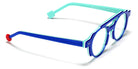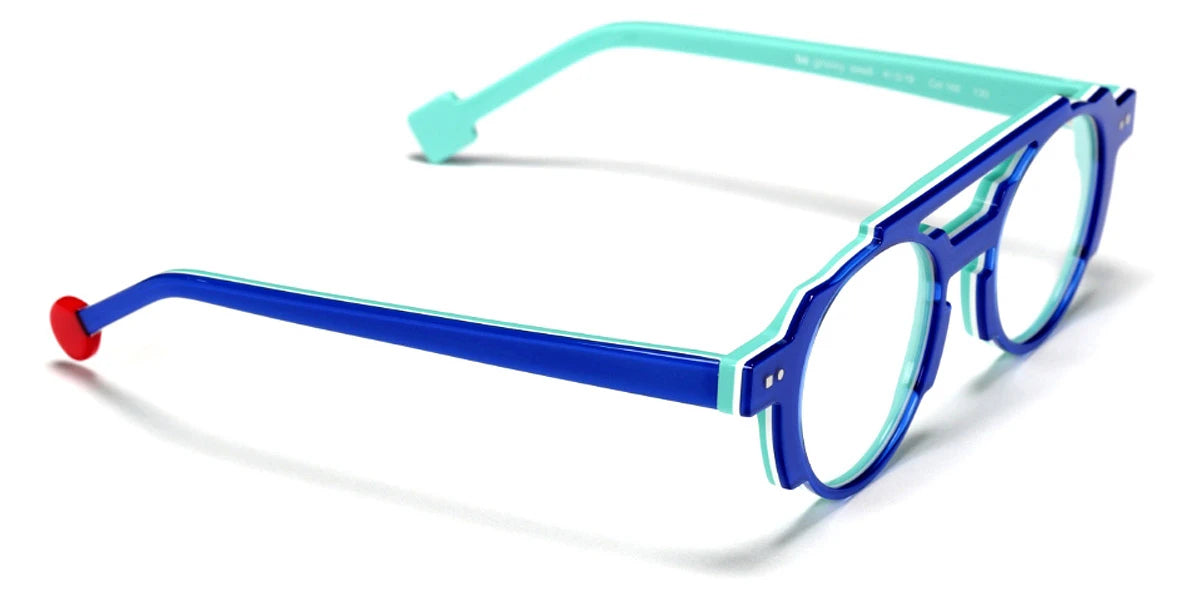 Shiny Translucent Blue Majorelle/White/Shiny Turquoise (168) Eyeglasses (Mini Be Groovy Swell 168 41) by Sabine Be™. Size: 41-19-130, Shape: Geometric, Material: Acetate.