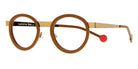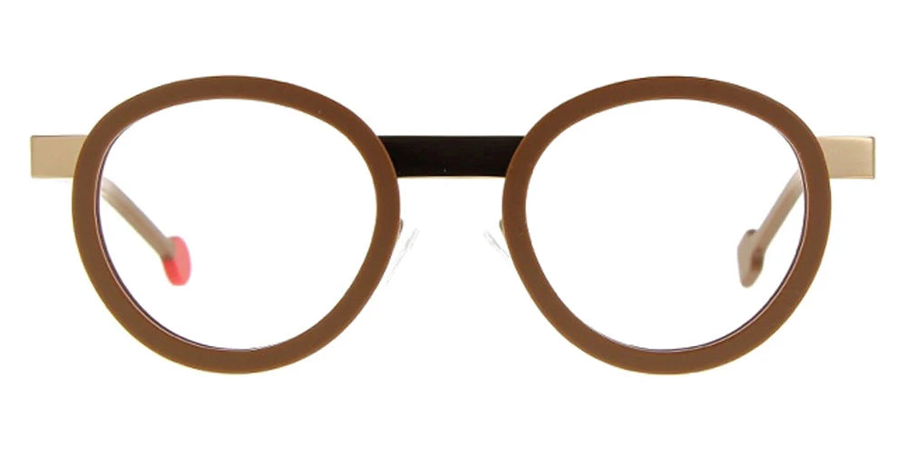 Matte Brown/Polished Rose Gold (04) Eyeglasses (Mini Be Lucky 04 43) by Sabine Be™. Size: 43-21-135, Shape: Geometric, Material: Acetate and Metal.