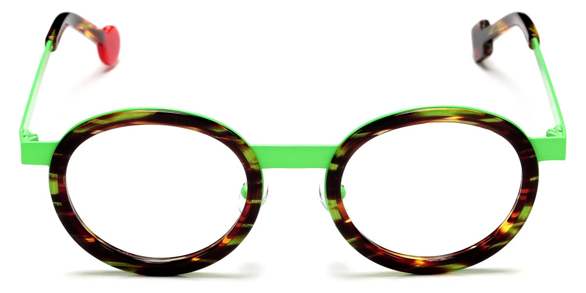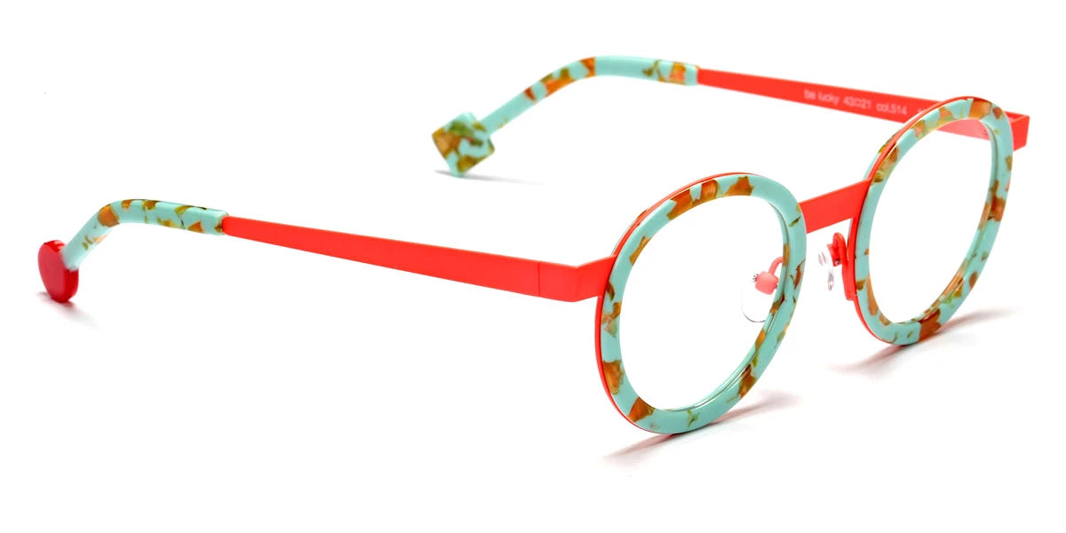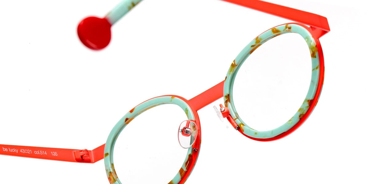 Mini Be Lucky Eyeglasses by Sabine Be™. The geometric shape design feature a full rim acetate and metal frame. This model is available in eight different color combinations and sizes. Bright design and attention to the smallest details - these terms perfectly correspond to the Sabine Be eyewear brand, popular in dozens of countries around the world. Sabine Be eyewear for kids is a diverse collection of frames that, thanks to unusual patterns or styles, have a chance to please every child. Each model, including Mini Be Lucky, is an interesting design that corresponds to the latest trends and styles of eyewear fashion. Mini Be Lucky glasses are high quality at a great price, so if that's what you're after, you and your child will definitely be happy with these frames. Sabine Be frames are widely popular due to their original design, style, and elegance. Both men's and women's frames differ in stylistic features with an imprint of the main trends. The brand is relatively young, founded in 2014, but thanks to the uniqueness of the design in each frame, and impeccable style, Sabine Be very quickly conquered the optical market and became a benchmark of sophistication and individuality. Each frame is made exclusively in France, each detail complements and emphasizes the uniqueness of the product. Thanks to careful attention to every detail plus the work of the best optical designers, each eyeglass frame is a true work of art. Combining different materials and luxurious forms, any model from the French manufacturer corresponds to the latest fashion trends. The variety of colors in the frames and the combination of materials can satisfy even the most demanding request. Whether it's a single material design or a combination of minimal color and finish to something quite complex, the company's approach to eyewear translates into something that matches your personality and style.
