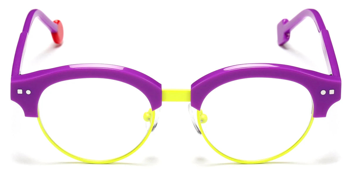 Shiny Purple/Neon Yellow Satin (591) Eyeglasses (Mini Be Master Pantos 591 45) by Sabine Be™. Size: 45-17-135, Shape: Wayfarer, Material: Acetate and Metal.