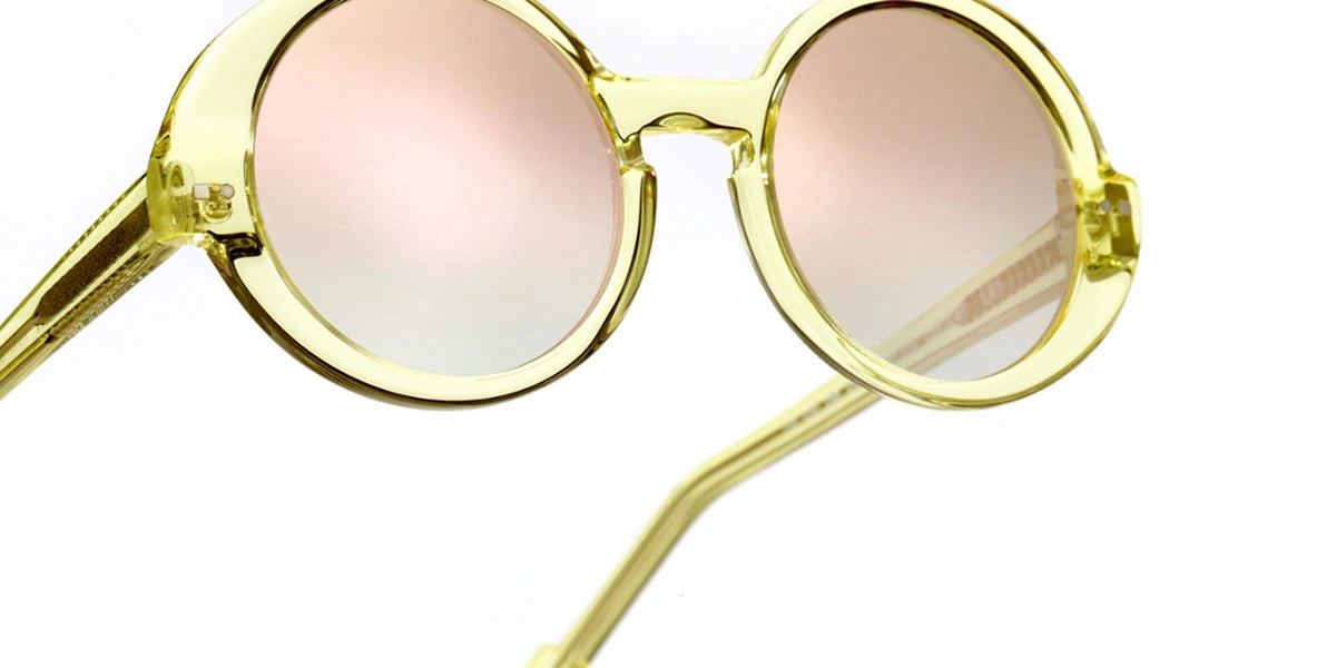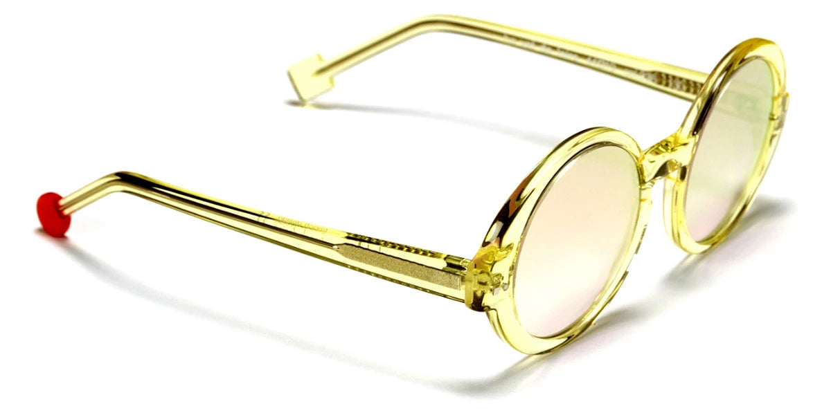 Shiny Translucent Yellow (336) Sunglasses (Mini Be Val de Loire Sun 336 44) by Sabine Be™. Size: 44-19-130, Shape: Round, Material: Acetate.