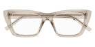 SL 276 MICA OPT Eyeglasses by Saint Laurent™. The cat-eye shape design feature a full rim recycled acetate frame. This model is available in two different color combinations and sizes. The elegant Saint Laurent eyeglasses are specially designed to express the perfect sense of style of their wearer. The combination of boundary-pushing silhouettes with timeless shapes and sophisticated accents makes this eyewear collection the perfect place to choose a unique and luxurious pair of readers. Saint Laurent successfully blends unequalled Italian craftsmanship with modern trends to offer outstanding eyewear pieces. Each and every pair of Saint Laurent eyeglasses can boast of a lightweight yet tough construction along with a unique sleek design that will surely add some boldness to your look.