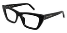 Black (003) Eyeglasses with Transparent AR lenses (SL 276 MICA OPT 003 53) by Saint Laurent™. Size: 53-16-145, Shape: Cat-Eye, Material: Recycled Acetate.