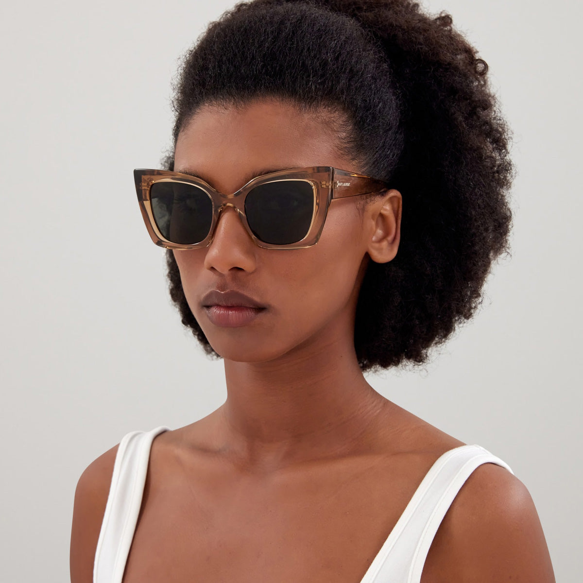 The cat-eye shape desing feature a full rim injection frame. This model is available in two different color combinations and sizes. Professionally crafted from opulent materials, which are both extremely durable and aesthetically appealing, Saint Laurent sunglasses are the premier choice for those striving to add an understated look to their existing wardrobe. Head-turning silhouettes with timeless design and extravagant rock'n'roll accents represent the brand's extraordinary fashion attitude. Distinguished by superior quality, these sunnies are extra comfortable, safe, durable and amazingly stylish!