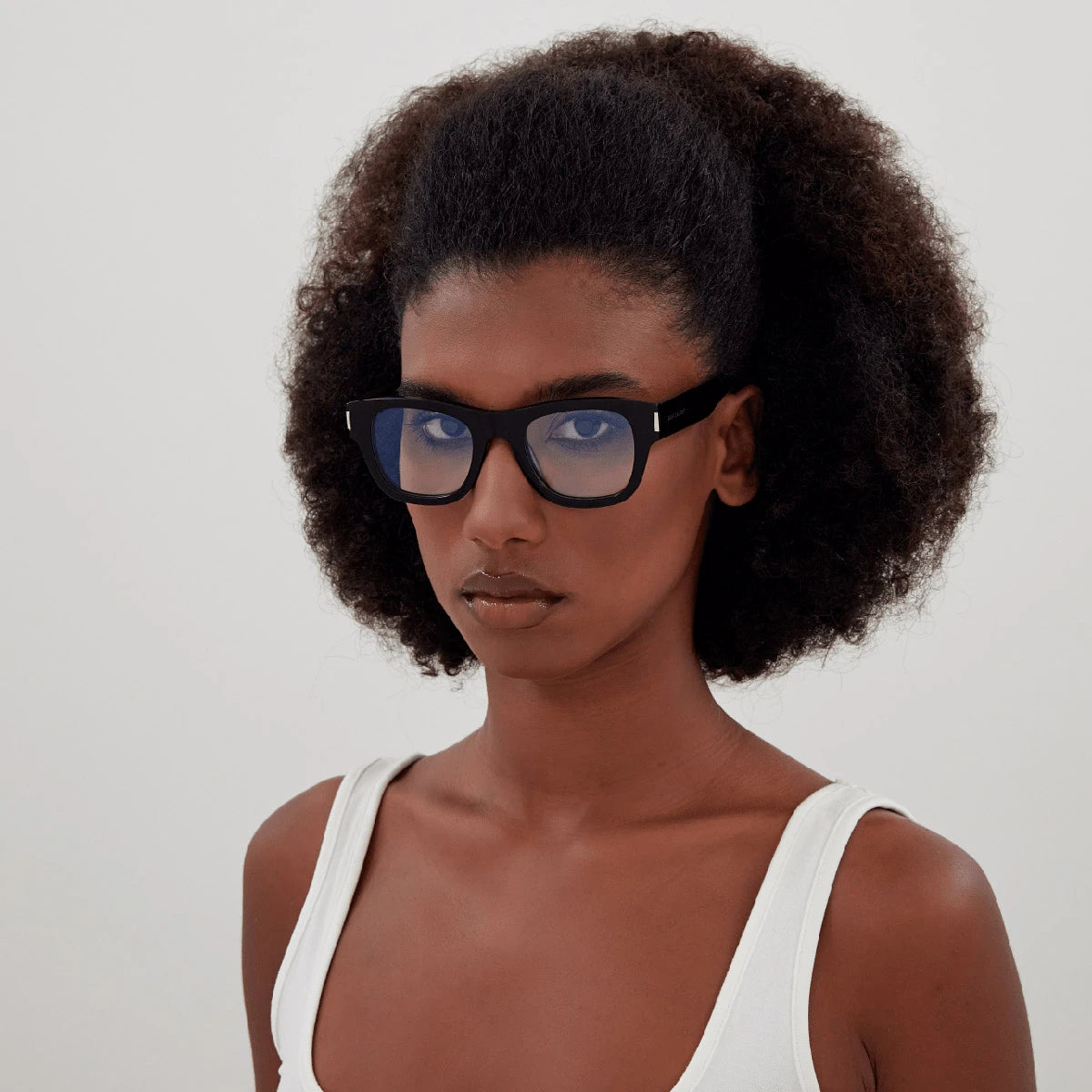 Most Saint Laurent eyeglasses are offered in clear acetate, which makes them extremely flattering for everyday use.