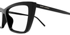 Black (001) Eyeglasses with Transparent AR lenses (SL 737 MICA THIN OPT 001 54) by Saint Laurent™. Size: 54-16-145, Shape: Cat-Eye, Material: Recycled Acetate.