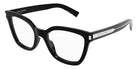 Black/Crystal (001) Eyeglasses with Transparent AR lenses (SL 748 001 54) by Saint Laurent™. Size: 54-19-145, Shape: Cat-Eye, Material: Recycled Acetate and Resin.