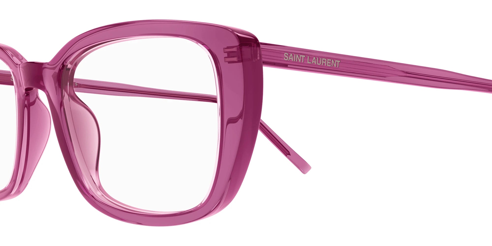 Pink (009) Eyeglasses with Transparent AR lenses (SL 776 009 49) by Saint Laurent™. Size: 49-20-135, Shape: Rectangle, Material: Recycled Acetate.