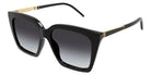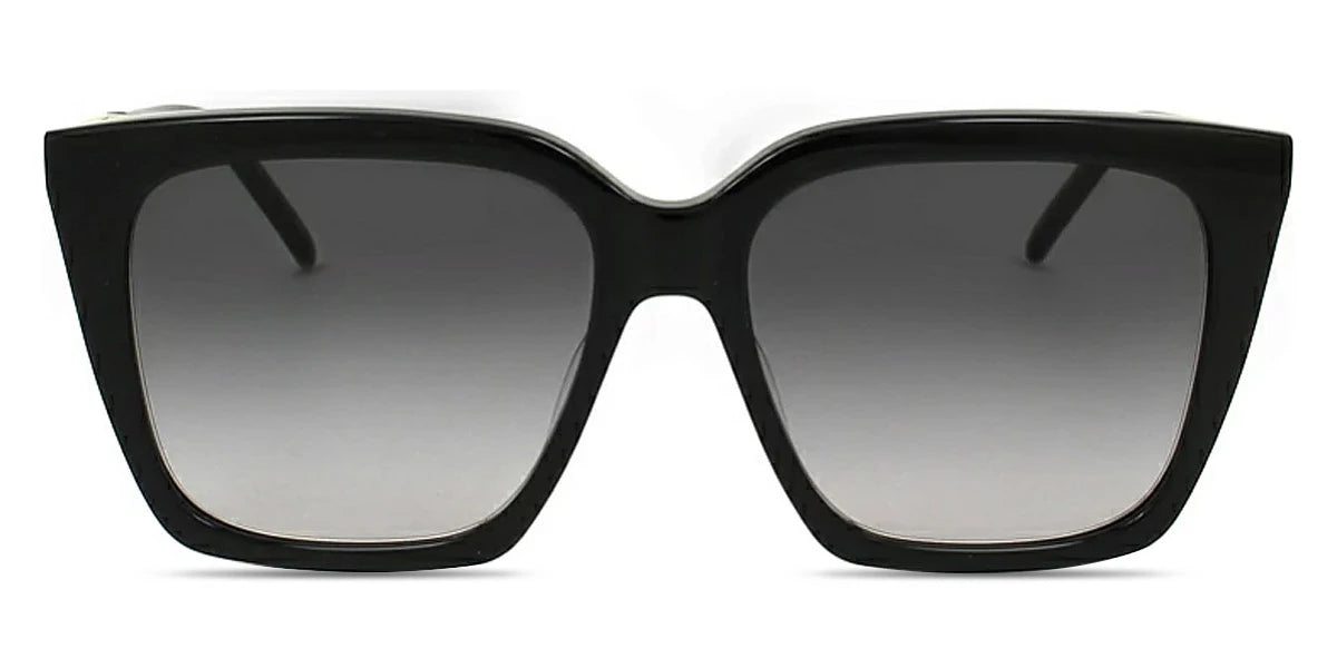 Black/Gold (002) Sunglasses with Gray Gradient lenses (SL M100 002 56) by Saint Laurent™. Size: 56-16-145, Shape: Oversized, Material: Acetate.