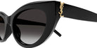 Black (002) Sunglasses with Gray Gradient lenses (SL M115 002 54) by Saint Laurent™. Size: 54-20-140, Shape: Cat-Eye, Material: Recycled Acetate.