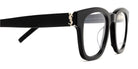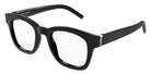 Black (001) Eyeglasses with Transparent AR lenses (SL M124 OPT 001 49) by Saint Laurent™. Size: 49-22-145, Shape: Wayfarer, Material: Recycled Acetate.