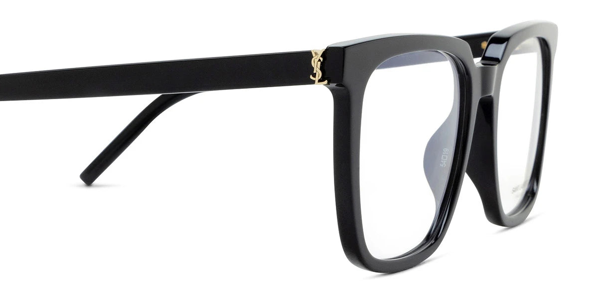Black (001) Eyeglasses (SL M146 OPT 001 54) by Saint Laurent™. Size: 54-19-145, Shape: Square, Material: Recycled Acetate.