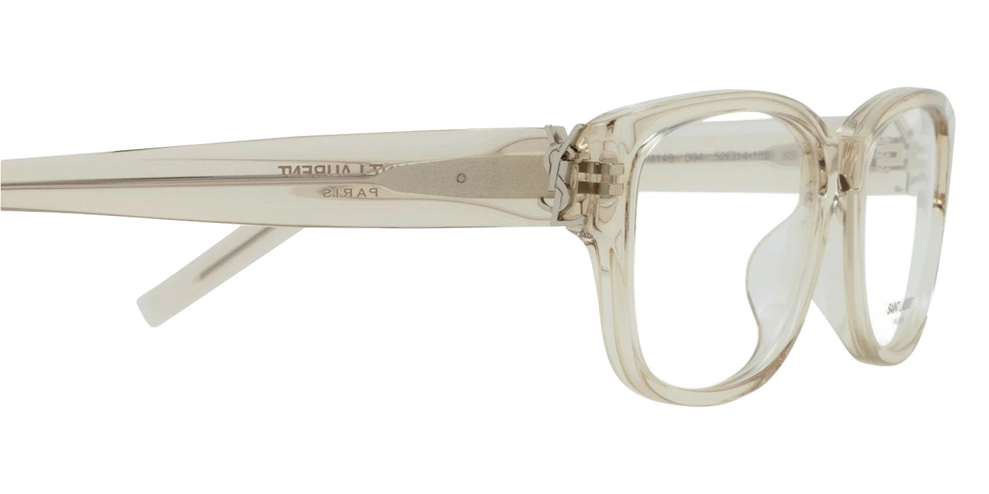Beige (004) Eyeglasses (SL M149 004 52) by Saint Laurent™. Size: 52-14-135, Shape: Rectangle, Material: Recycled Acetate.