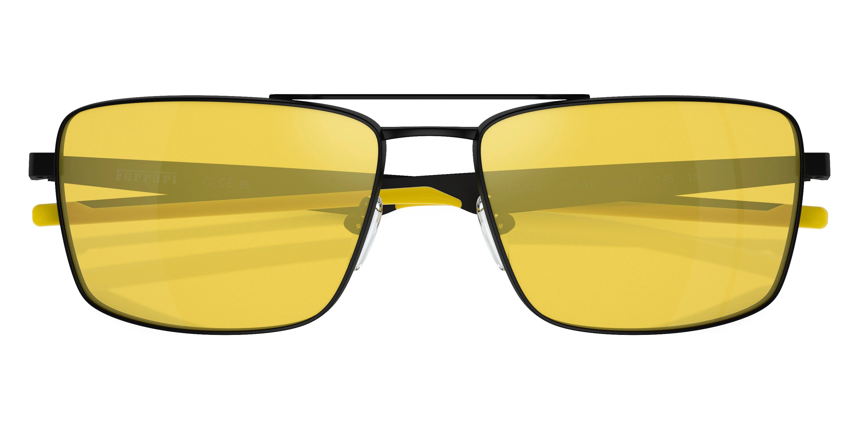 Matte Black (101/V9) Sunglasses with Mirrored Yellow lenses (FZ5001 101/V9 60) by SCUDERIA™. Size: 60-17-145, Shape: Rectangle, Material: Metal and Steel.