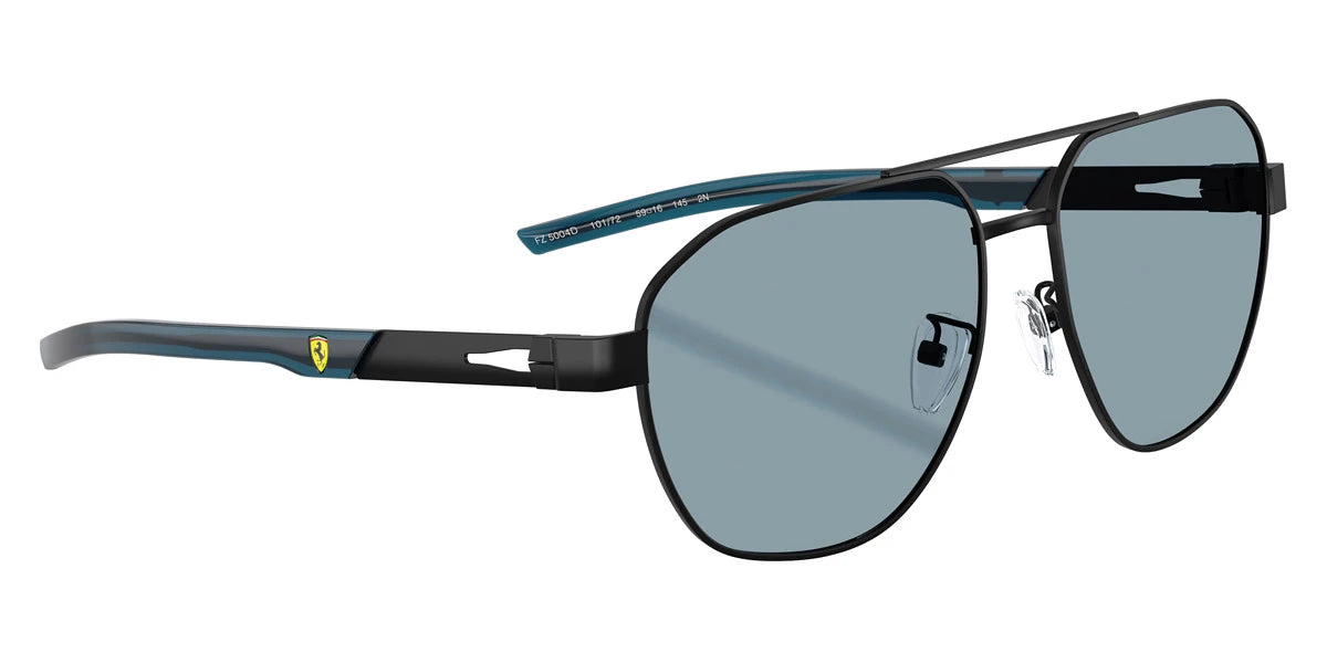 Matte Black/Opal Blue (101/72) Sunglasses with Azure lenses (FZ5004D 101/72 59) by SCUDERIA™. Size: 59-16-145, Shape: Irregular, Material: Metal.
