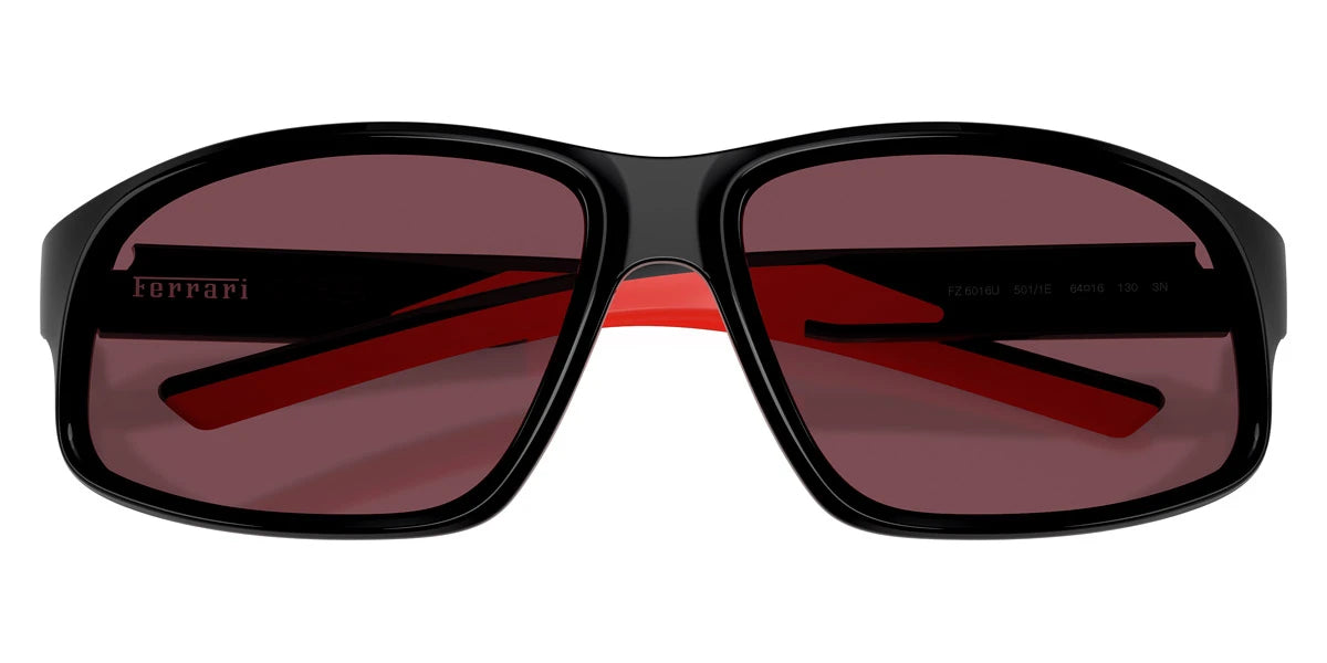 Black/Red (501/1E) Sunglasses with Red Ferrari Exclusive lenses (FZ6016U 501/1E 64) by SCUDERIA™. Size: 64-16-130, Shape: Irregular, Material: Injected.