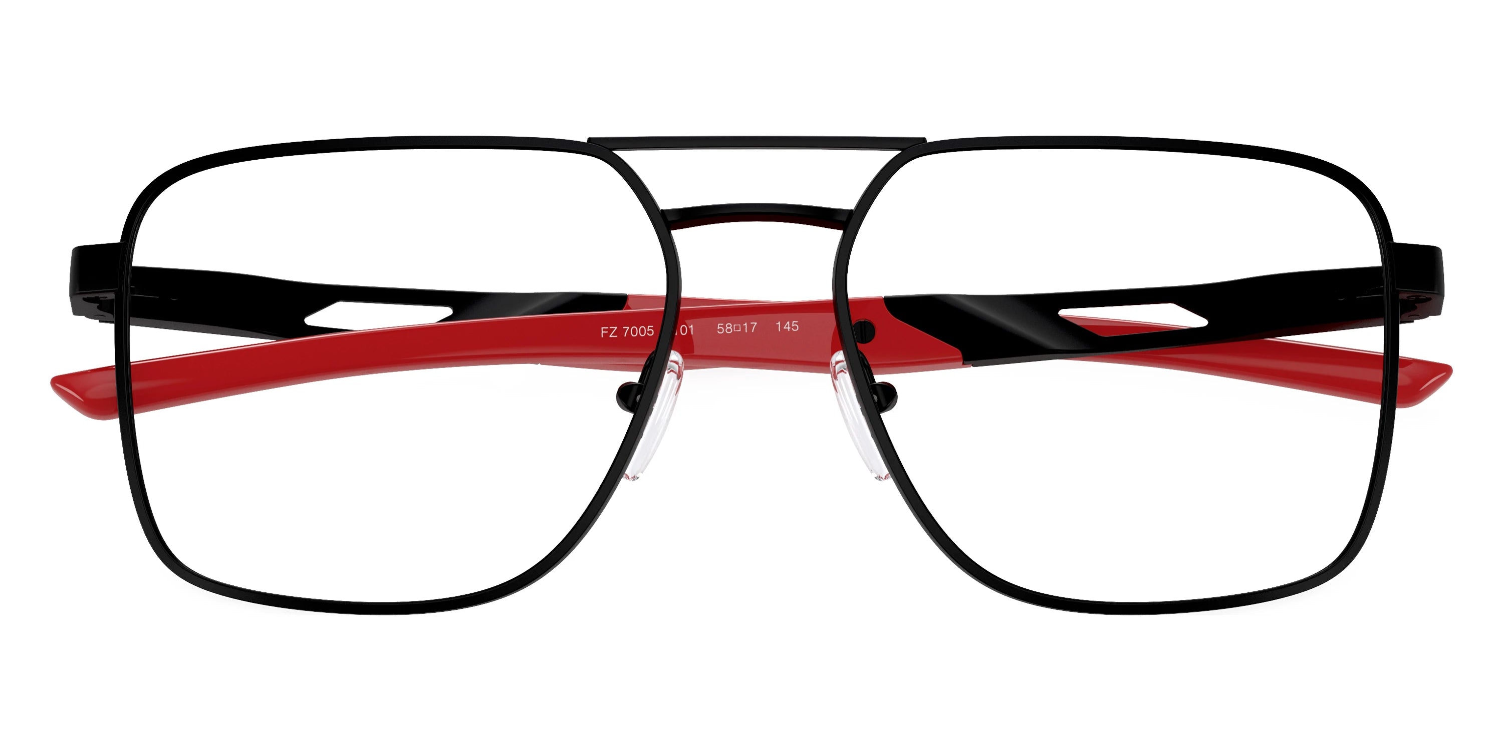 Matte Black (101) Eyeglasses (FZ7005 101 56) by SCUDERIA™. Size: 56-17-145, Shape: Square, Material: Metal.