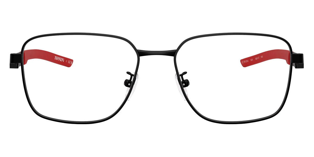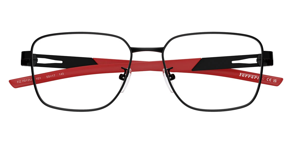 Matte Black/Red Matte (101) Eyeglasses (FZ7012D 101 53) by SCUDERIA™. Size: 53-17-145, Shape: Square, Material: Metal.