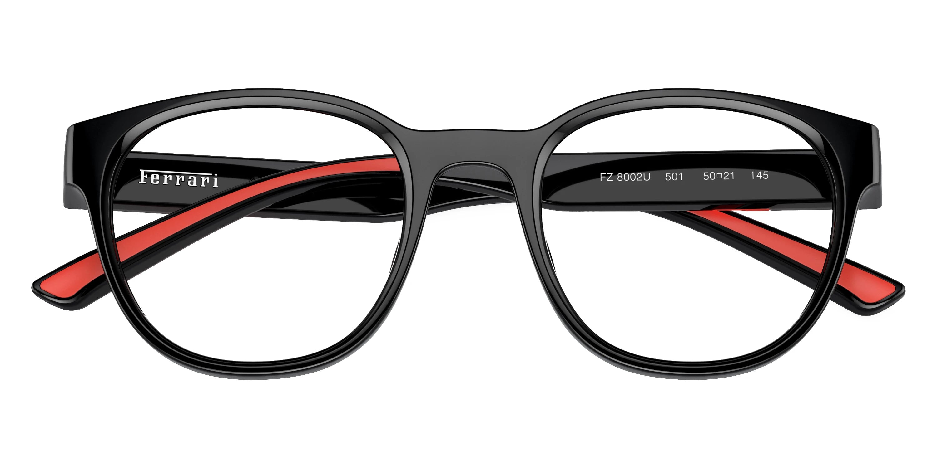 Black (501) Eyeglasses (FZ8002U 501 50) by SCUDERIA™. Size: 50-21-145, Shape: Wayfarer, Material: Injected.