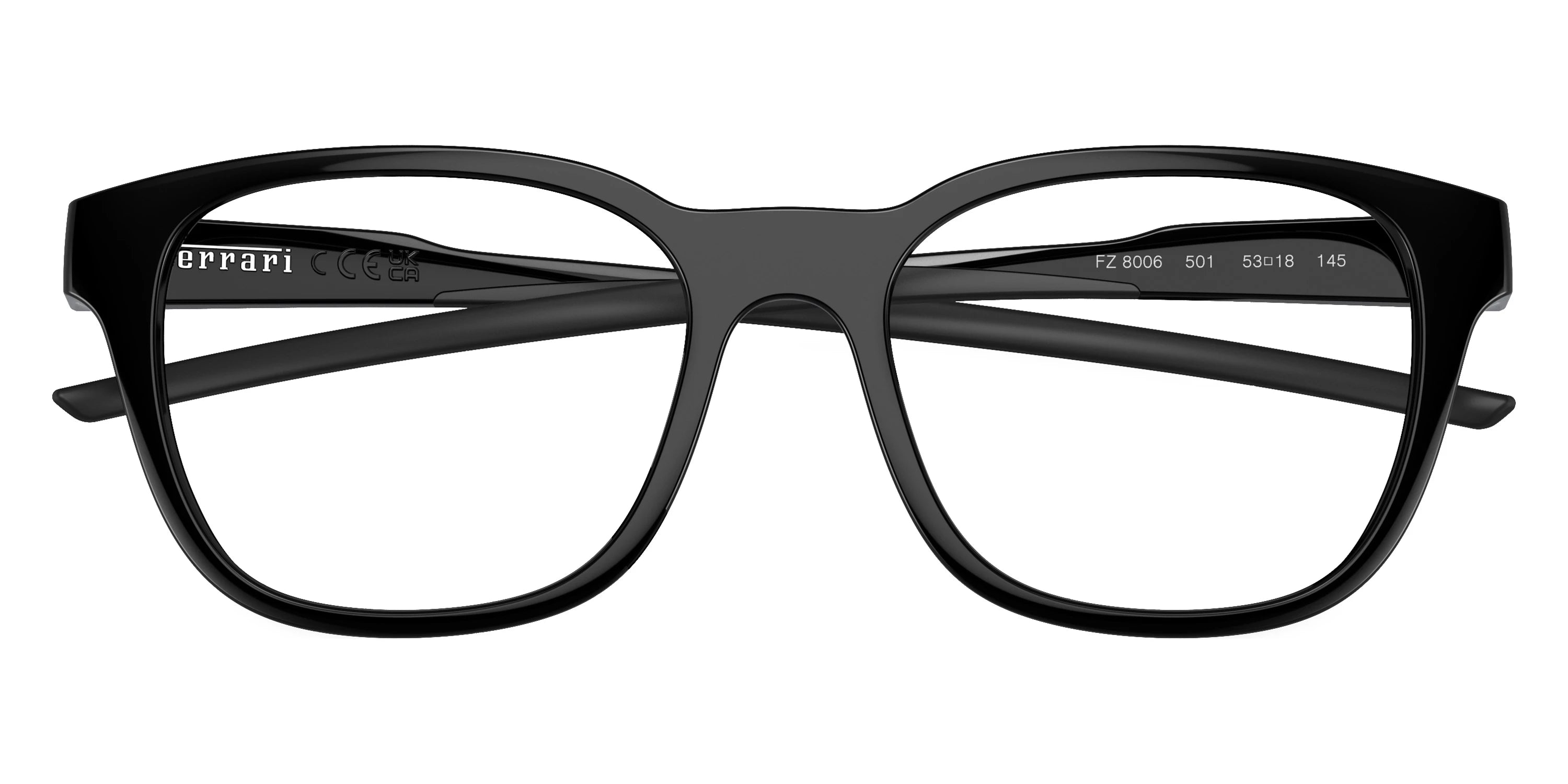 Black (501) Eyeglasses (FZ8006 501 53) by SCUDERIA™. Size: 53-18-145, Shape: Square, Material: Injected.