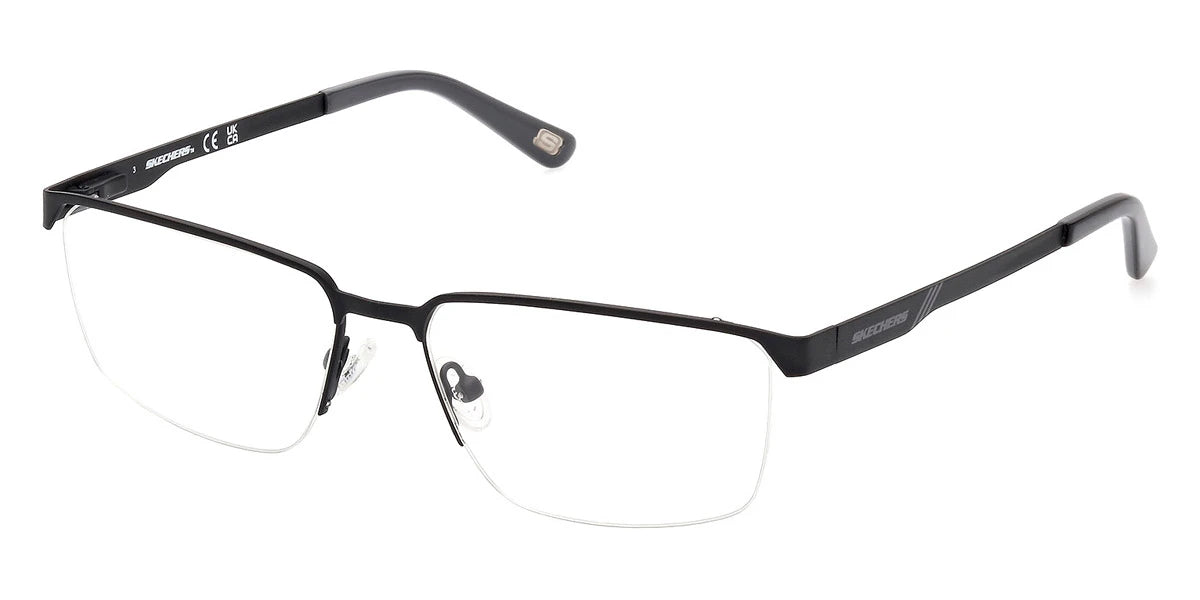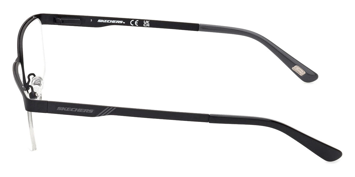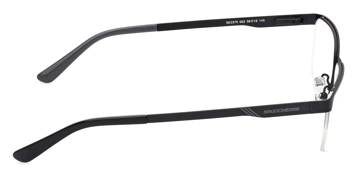 Matte Black (002) Eyeglasses (SE3375 002 56) by Skechers™. Size: 56-16-145, Shape: Rectangle, Material: Metal.