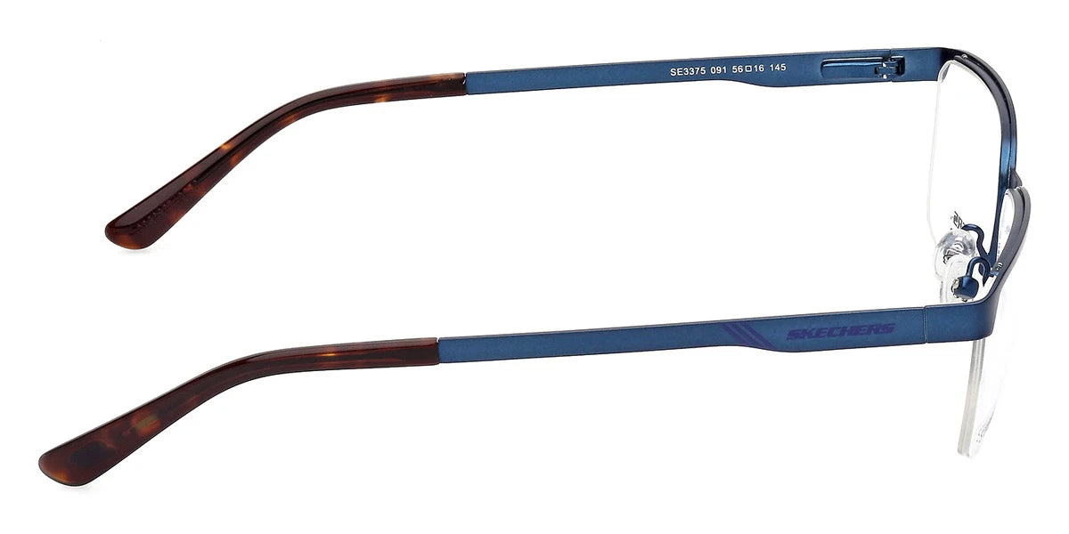 SE3375 Eyeglasses by Skechers™. The rectangle shape design feature a semi rimless metal frame. This model is available in three different color combinations and sizes. Skechers eyeglasses are designed for those people, who prefer sporty styles in their clothing and appreciate bright and bold colors. Playful designs and timeless silhouettes, including round, square and rectangular frames, provide vivid looks with pops of color and edgy logo usage. Made from innovative, high-grade materials, such as aluminum and carbon fiber, Skechers eyeglasses are reliable and price-competitive to support an active lifestyle without breaking the bank. Look through the exciting eyewear collection from Skechers and choose from the sports lifestyle-inspired designs to feel comfortable and stylish in your day-to-day life.