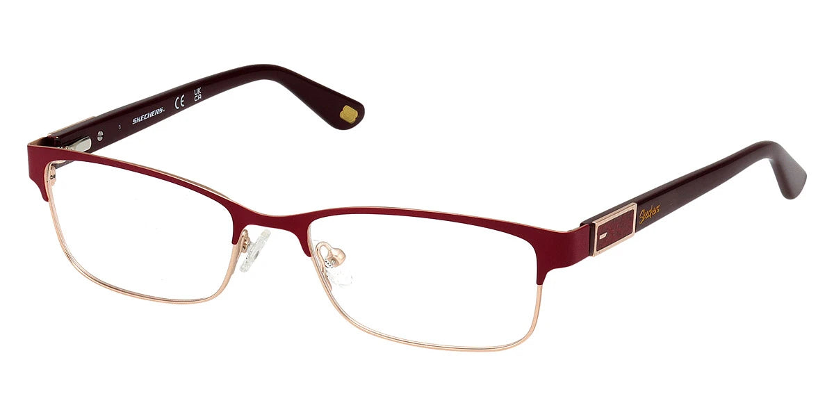 Matte Bordeaux (070) Eyeglasses (SE50028 070 52) by Skechers™. Size: 52-17-135, Shape: Rectangle, Material: Metal.