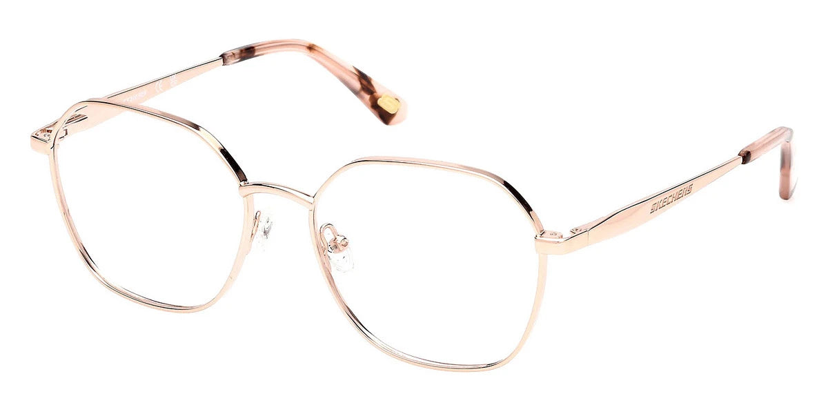 Shiny Rose Gold (028) Eyeglasses (SE50063 028 53) by Skechers™. Size: 53-16-140, Shape: Geometric, Material: Metal.