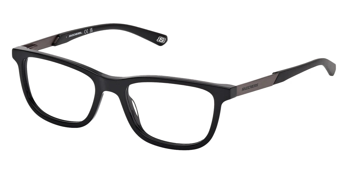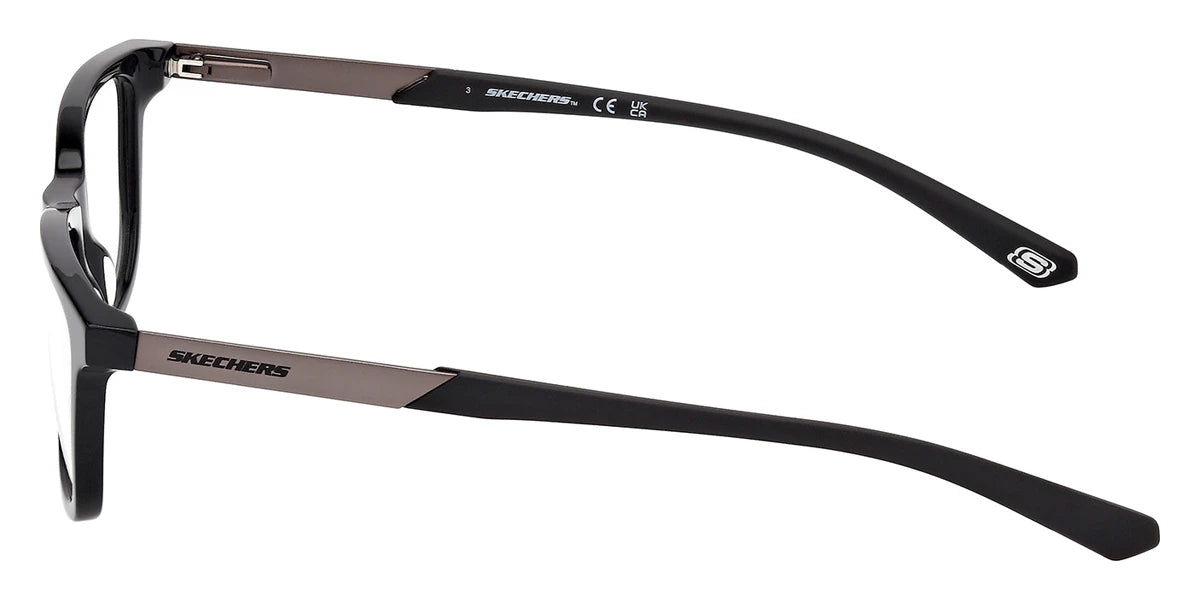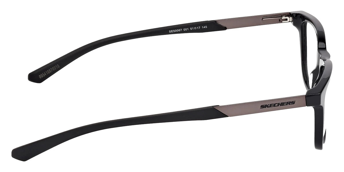 Shiny Black/Matte Antiqued Gunmetal (001) Eyeglasses (SE50067 001 51) by Skechers™. Size: 51-17-145, Shape: Square, Material: Plastic.