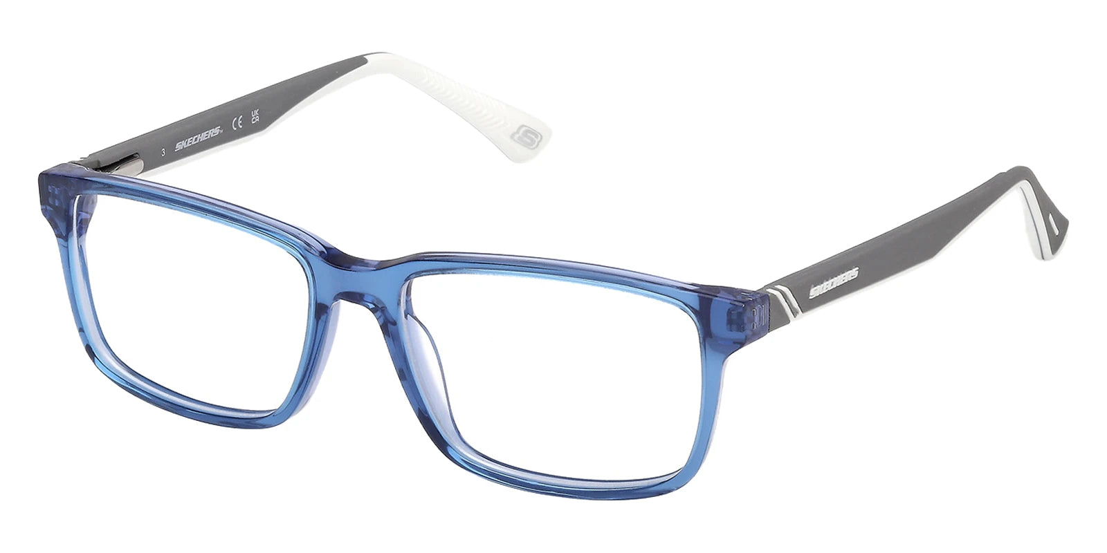Shiny Blue/Matte Gray (090) Eyeglasses (SE50118 090 48) by Skechers™. Size: 48-14-130, Shape: Rectangle, Material: Plastic.
