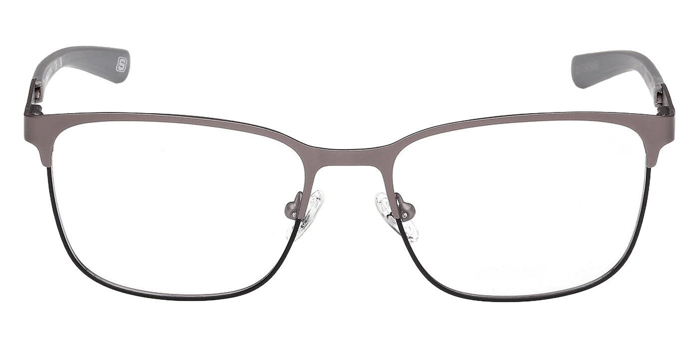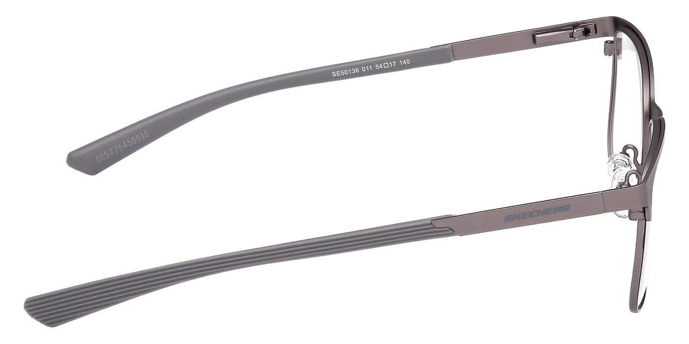 Shiny Satin Gunmetal (011) Eyeglasses (SE50136 011 54) by Skechers. Size: 54-17-140, Shape: Square, Material: Metal.