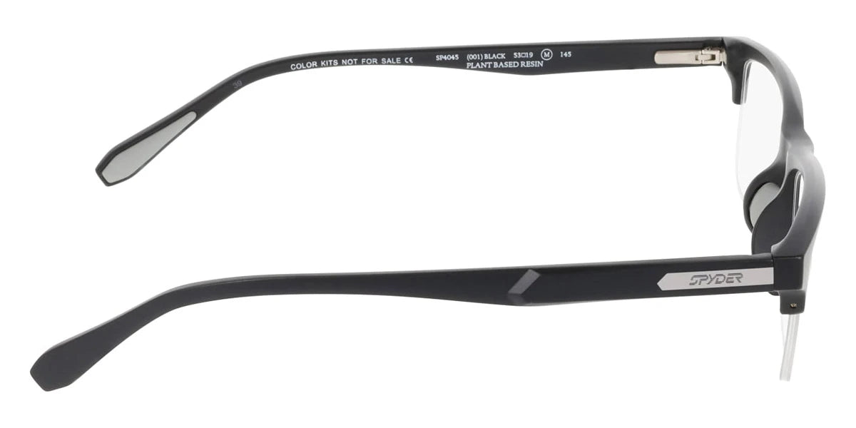 Black (001) Eyeglasses (SP4045 001 53) by Spyder™. Size: 53-19-140, Shape: Rectangle, Material: Injected.